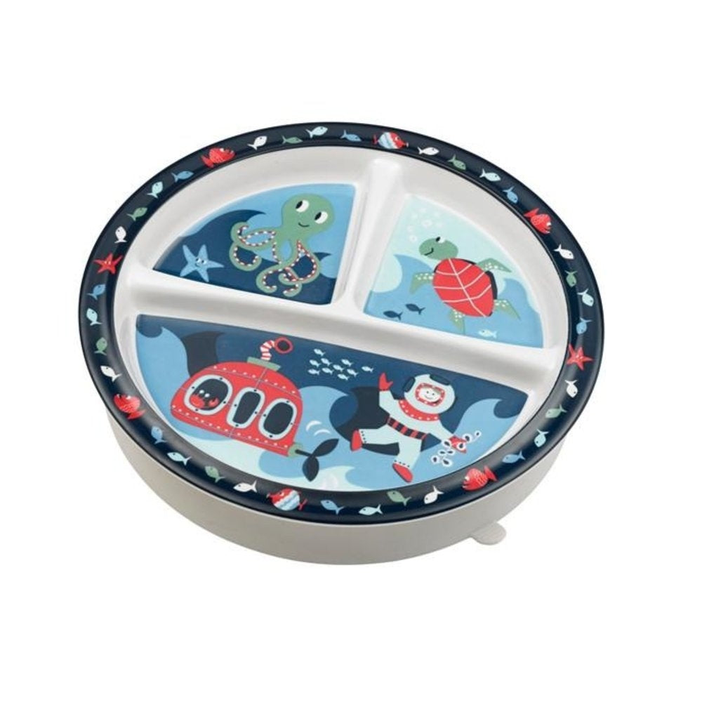 Base à ventouse qui reste en place jusqu'à la fin du repas. Assiette compartimentée à ventouse Technologie ada...