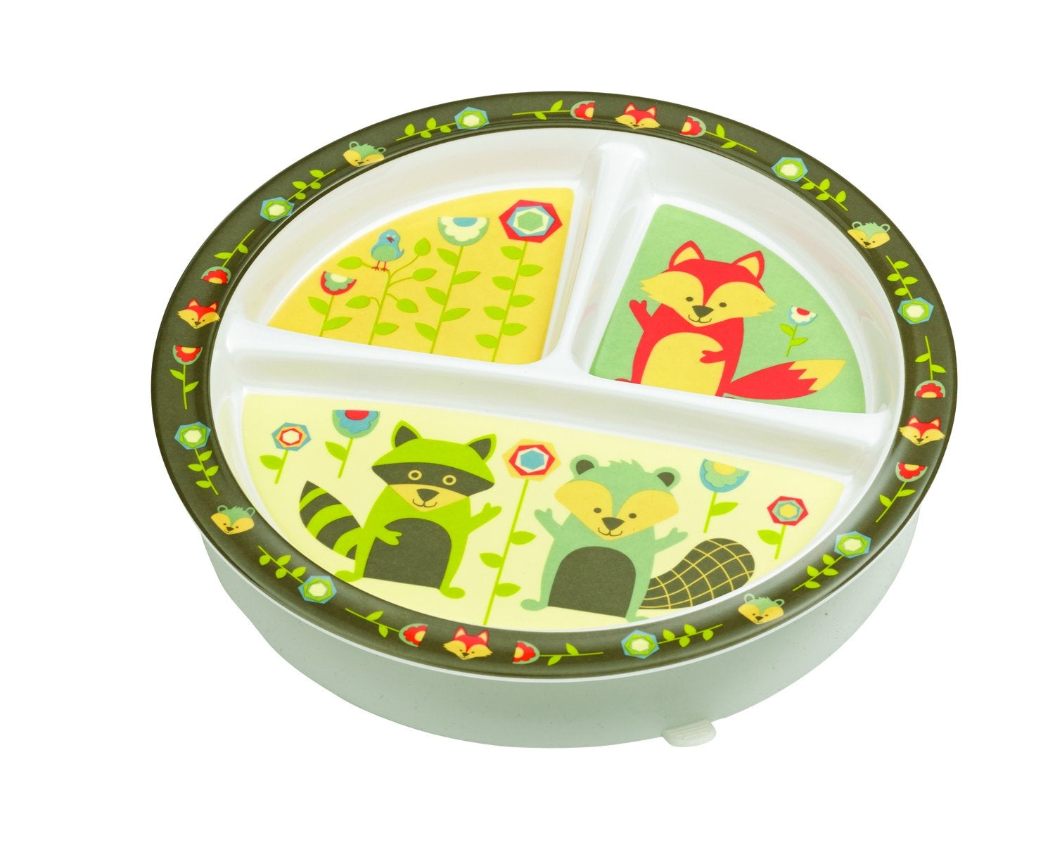 Assiette à sections 6 mois et plus Dessous anti-dérapant Anneau amovible Va au lave-vaisselle et au micro-ondes