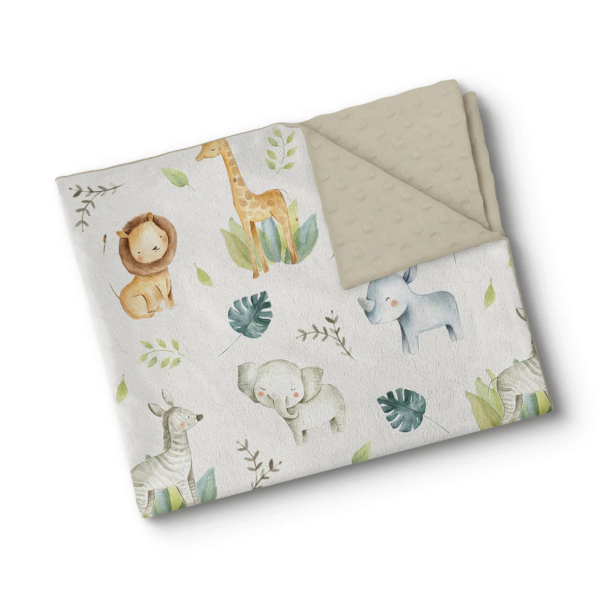 Caractéristiques principales Couverture luxueuse, douce et confortable sur le thème de la savane pour bébé Devant en minky ultra...