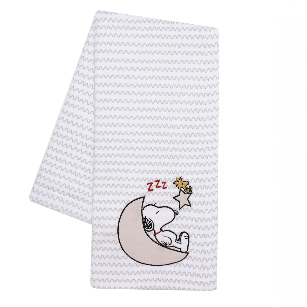 Couverture de poussette en polaire ultra-douce et douillette Comprend un Snoopy appliqué endormi sur un croissant de lune et un Woo...
