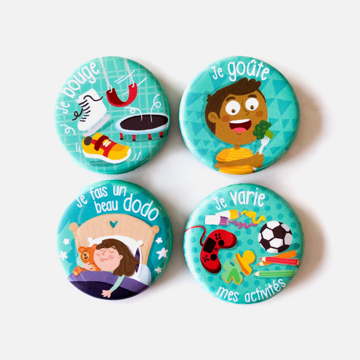 Ensemble d'aimants - Mes moments importants 12 aimants ronds illustrés avec les activités spéciales des enfants Idéal pour...