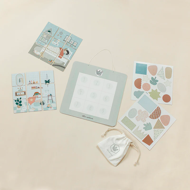 1 TABLEAU MAGNÉTIQUE à double surface. L’une pour déposer les morceaux de casse-tête, l’autre pour s’amuser avec les formes aima...