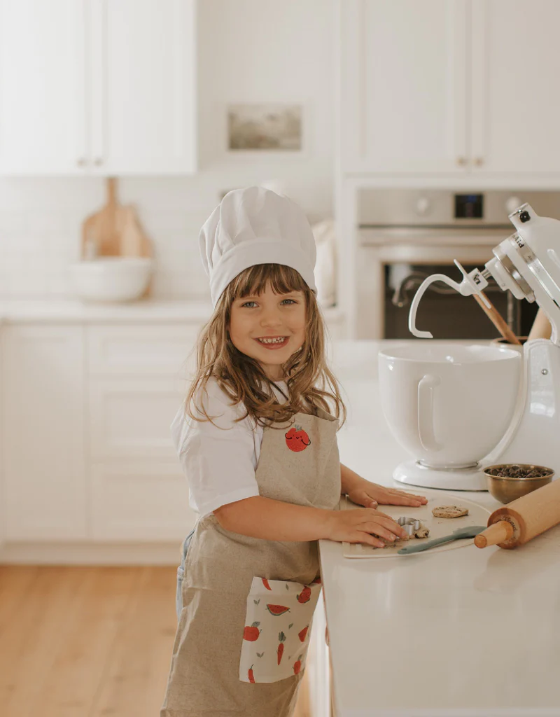 Chaque ensemble comprend : 1 tablier pour enfant 1 chapeau de chef 1 spatule en silicone 1 emporte-pièce Cet ensemble Petit...