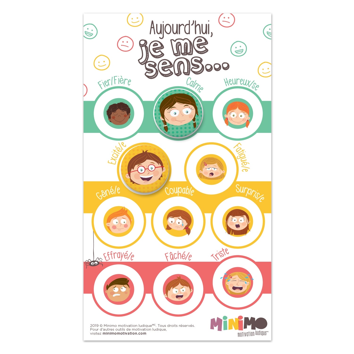 La couleur de mes émotion - Ensemble de motivation Dès 3 ans 11 aimants ronds (Fier/Fière, Calme, Heureux/se, Gêné/e, Coupable, ...