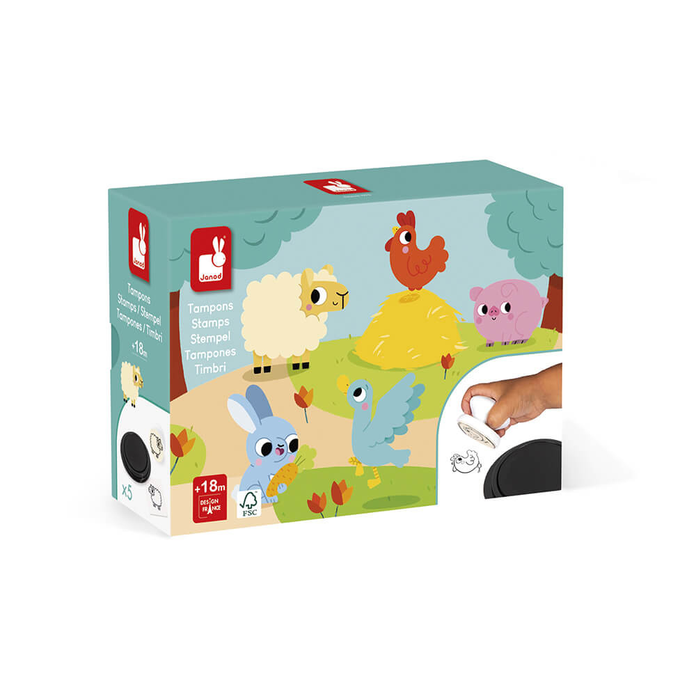 ◦ 5 gros tampons et 1 encreur noir◦ Sur le thème incontournable de la ferme et de ses animaux◦ Pour les petits artistes dès 18 mois