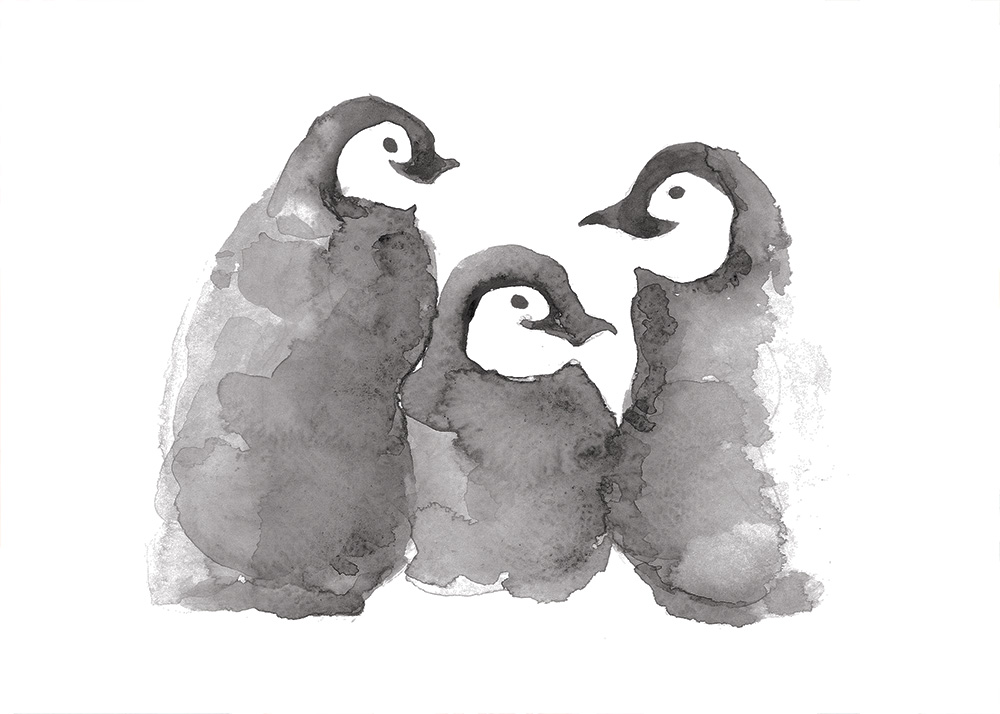 Jolie carte de souhaits avec dessin de pingouins sur le dessus.