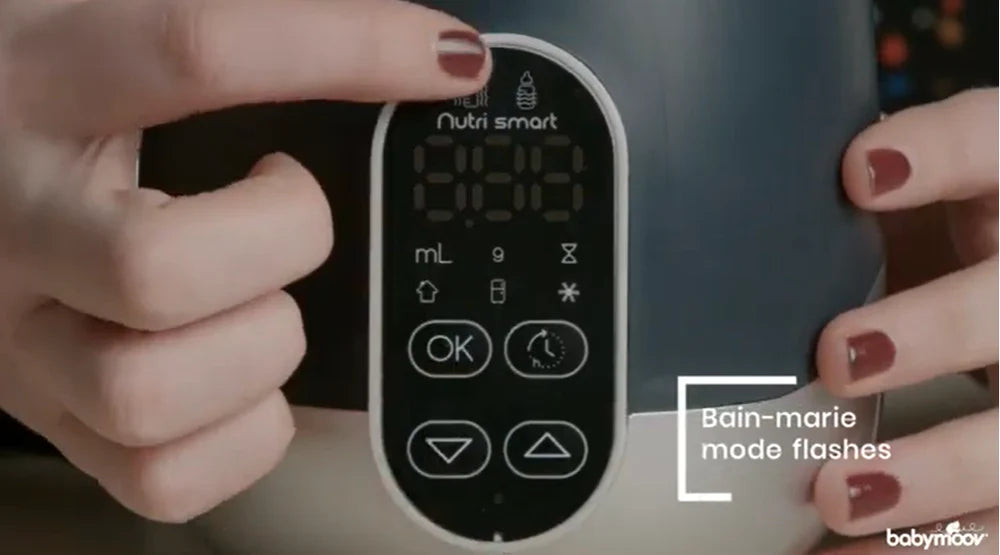 Les préprogrammations du chauffe-biberon NutriSmart ajusteront automatiquement le temps de chauffe pour atteindre la température idéale pour bébé, 37°c. Il vous suffira simplement d'indiquer la quantité à réchauffer et sa température avant chauffe (ambiant, frigo ou congelé). Vous pourrez ainsi réchauffer les repas de bébé en toute confiance !