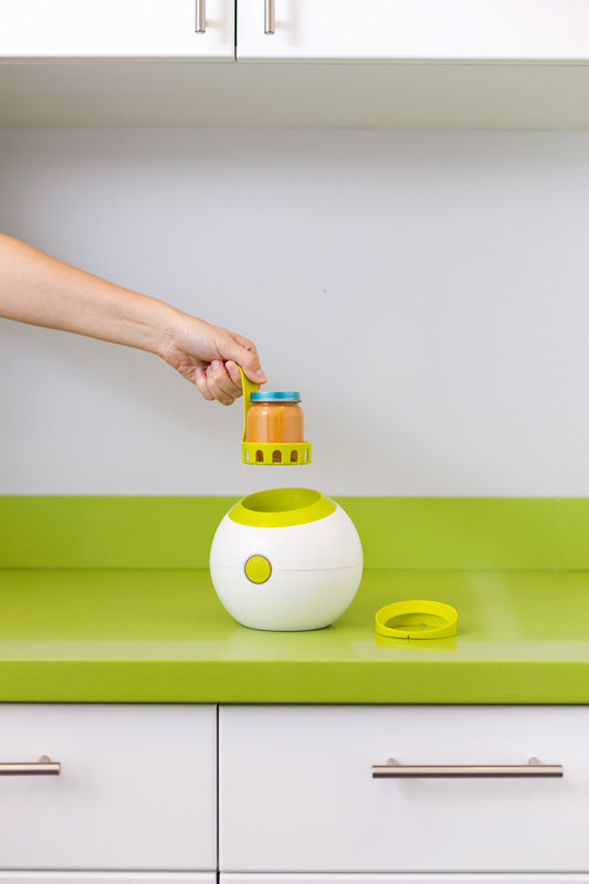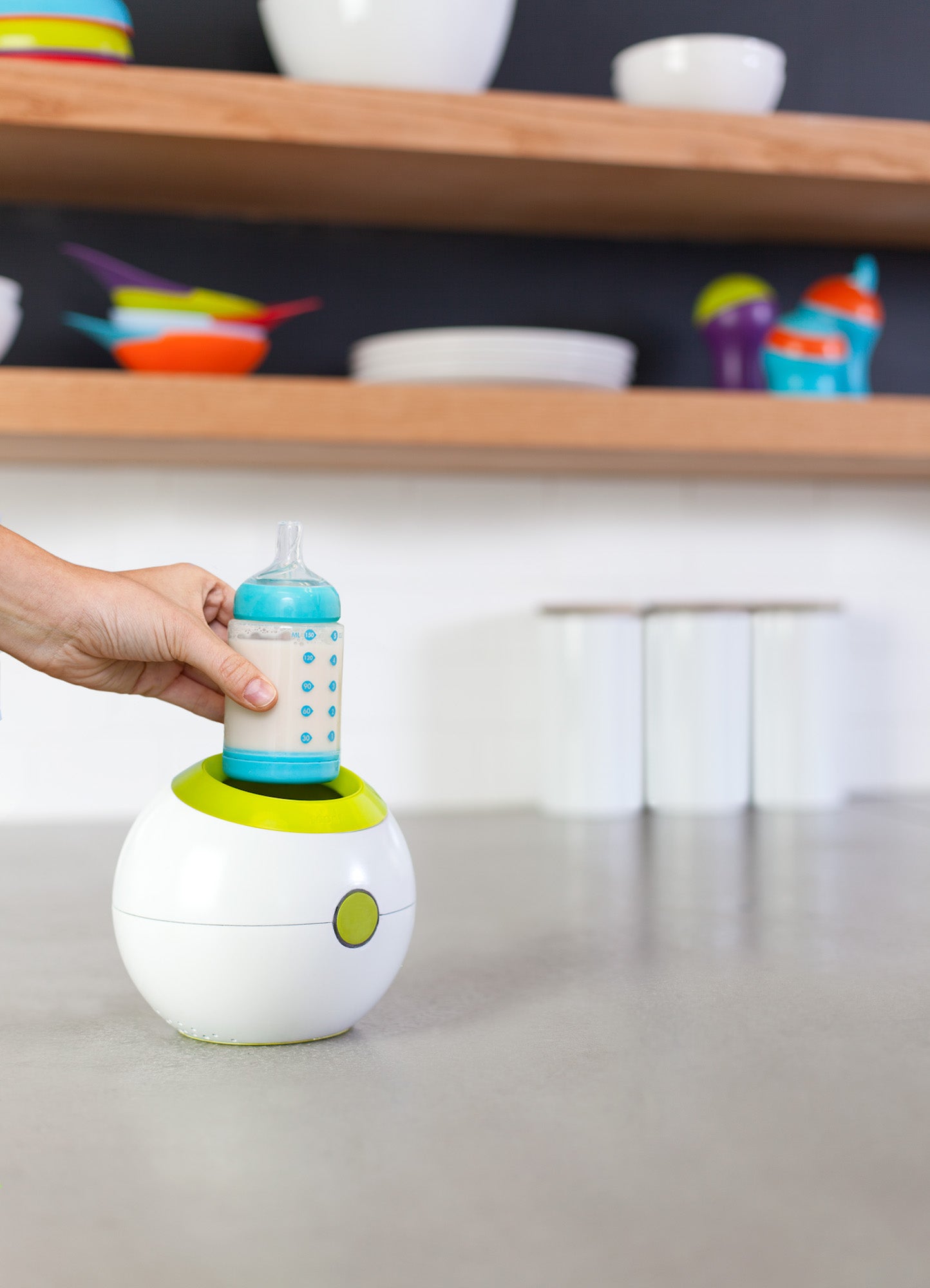 Vous pourrez réchauffer vos biberons et purées grâce au chauffe-biberon ORB de Boon. Il réchauffe à la vapeur et de façon uniforme.