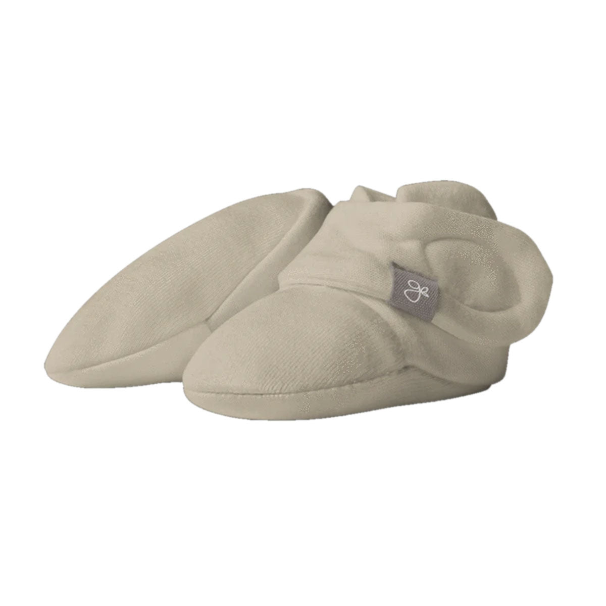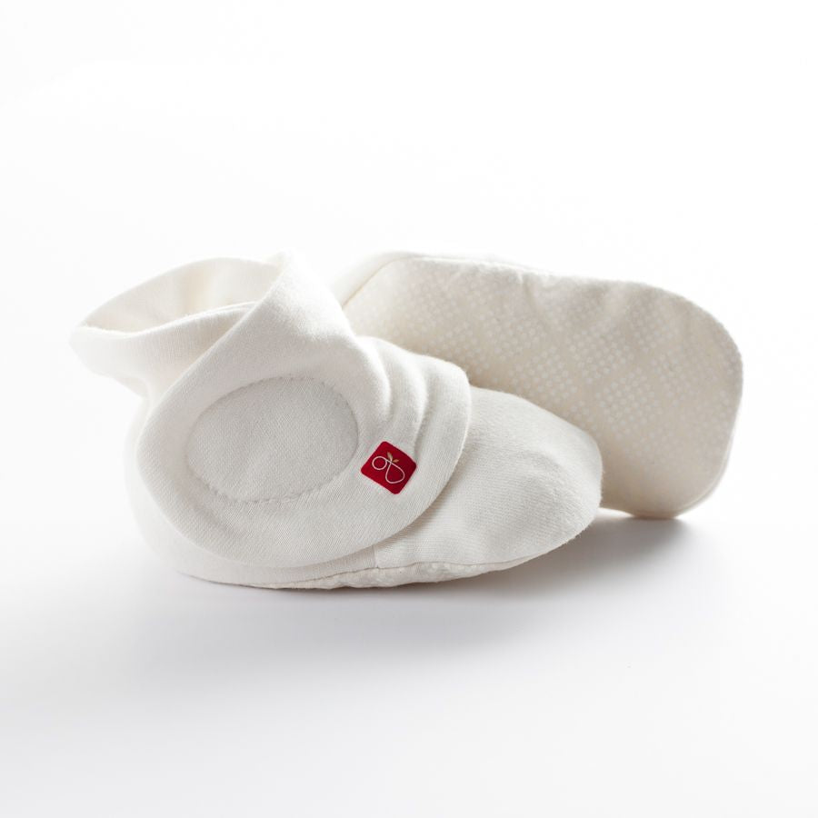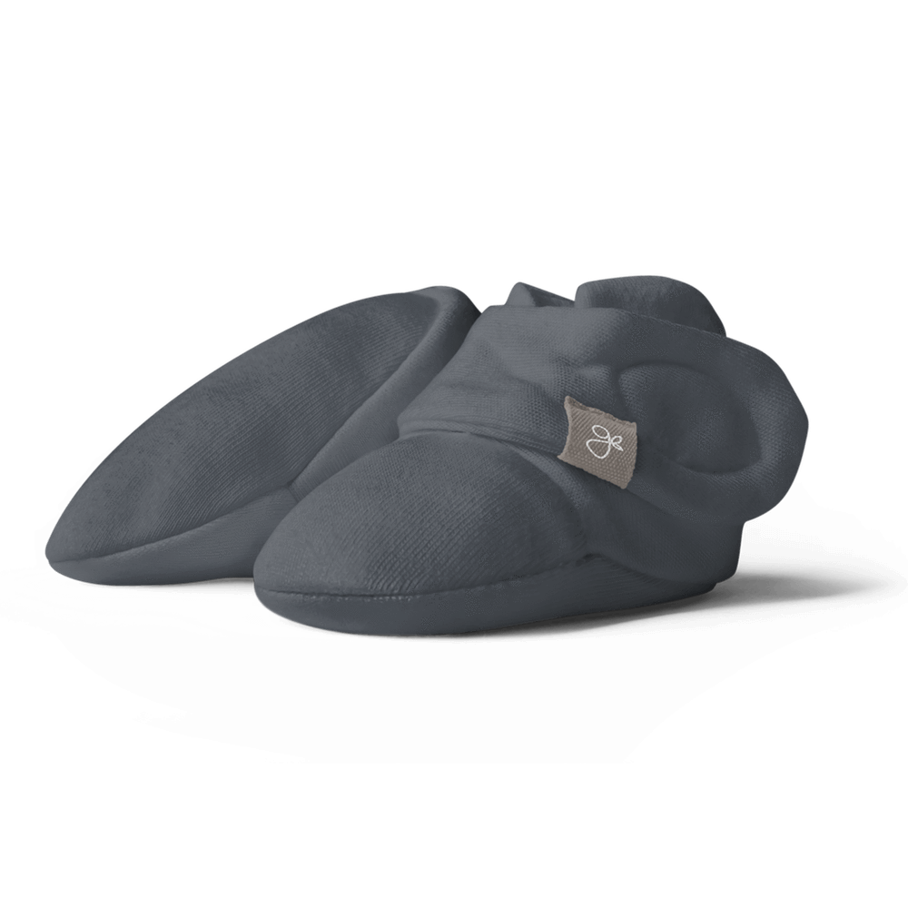 Les chaussons Goumiboots conçus pour rester sur les pieds de bébé. Ils aident bébé à garder sa chaleur corporelle et ils s'ajustent quand bébé grandit. Le concept de l'attache avec un élastique d'un côté et une bande de velcro ajustable de l'autre en font des chaussons uniques qui tiendront en place tout en évoluant avec bébé. Faits de bambou et coton biologique, ils sont fabriqués dans le respect de l'environnement.