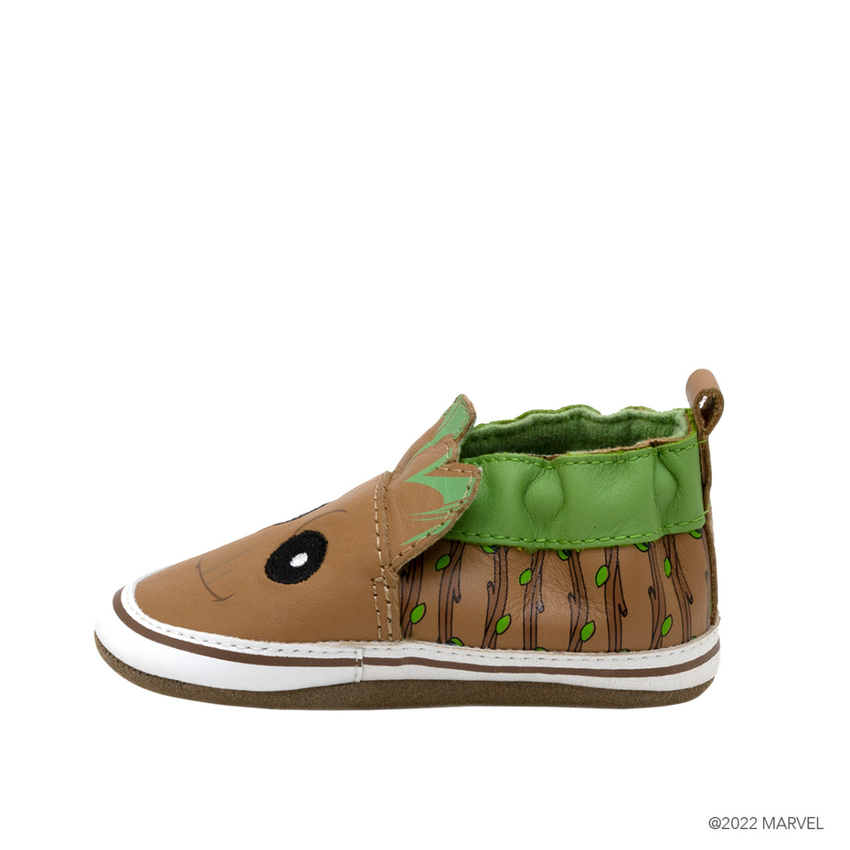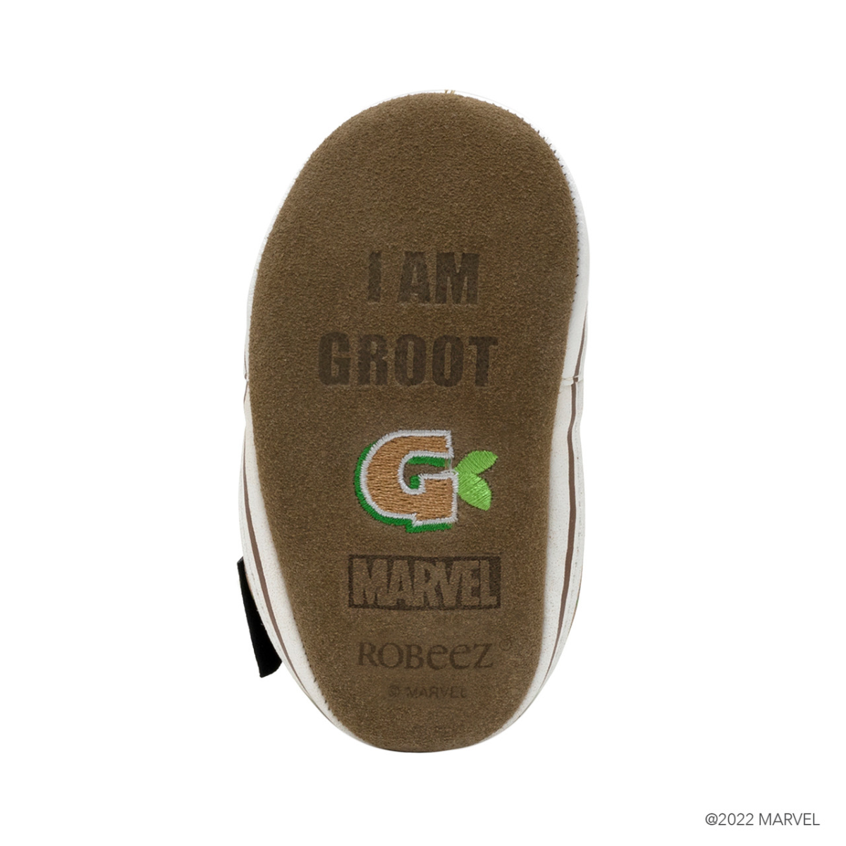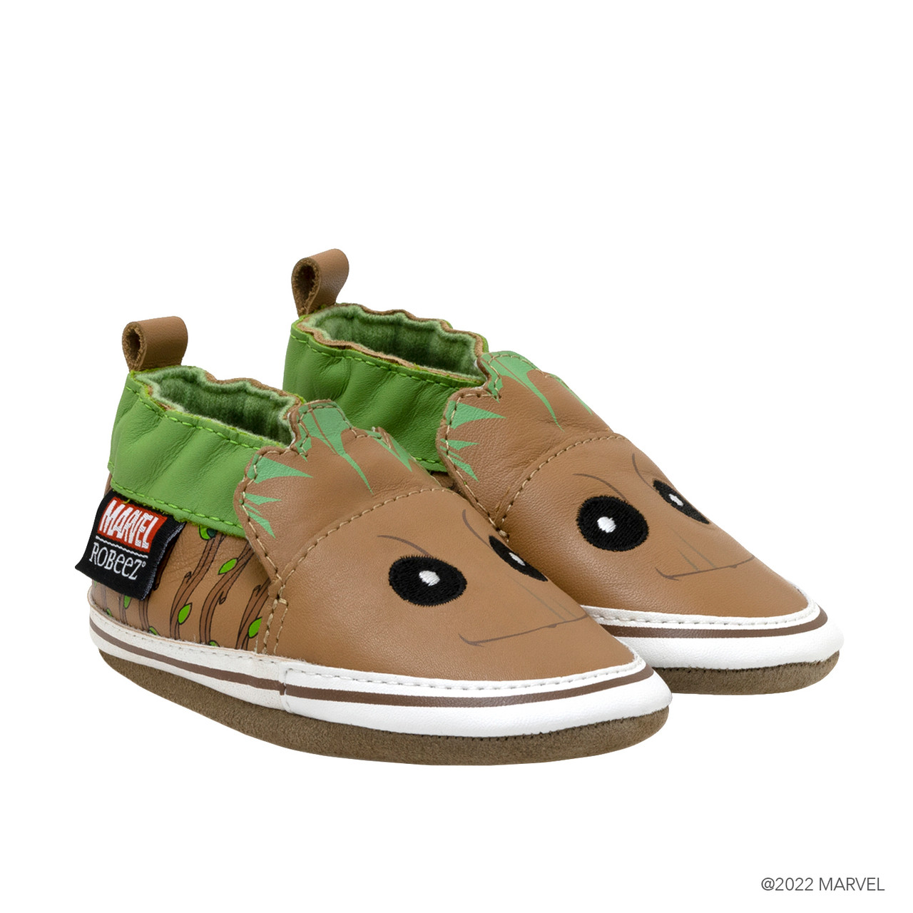 Les Robeez Marvel - Groot Soft Soles sont dotées d'adorables appliques en cuir qui en font le complément idéal de la garde-robe de votre bébé. La semelle en daim souple offre un soutien lors de la prise du sol et un toucher doux sur la peau de votre enfant.