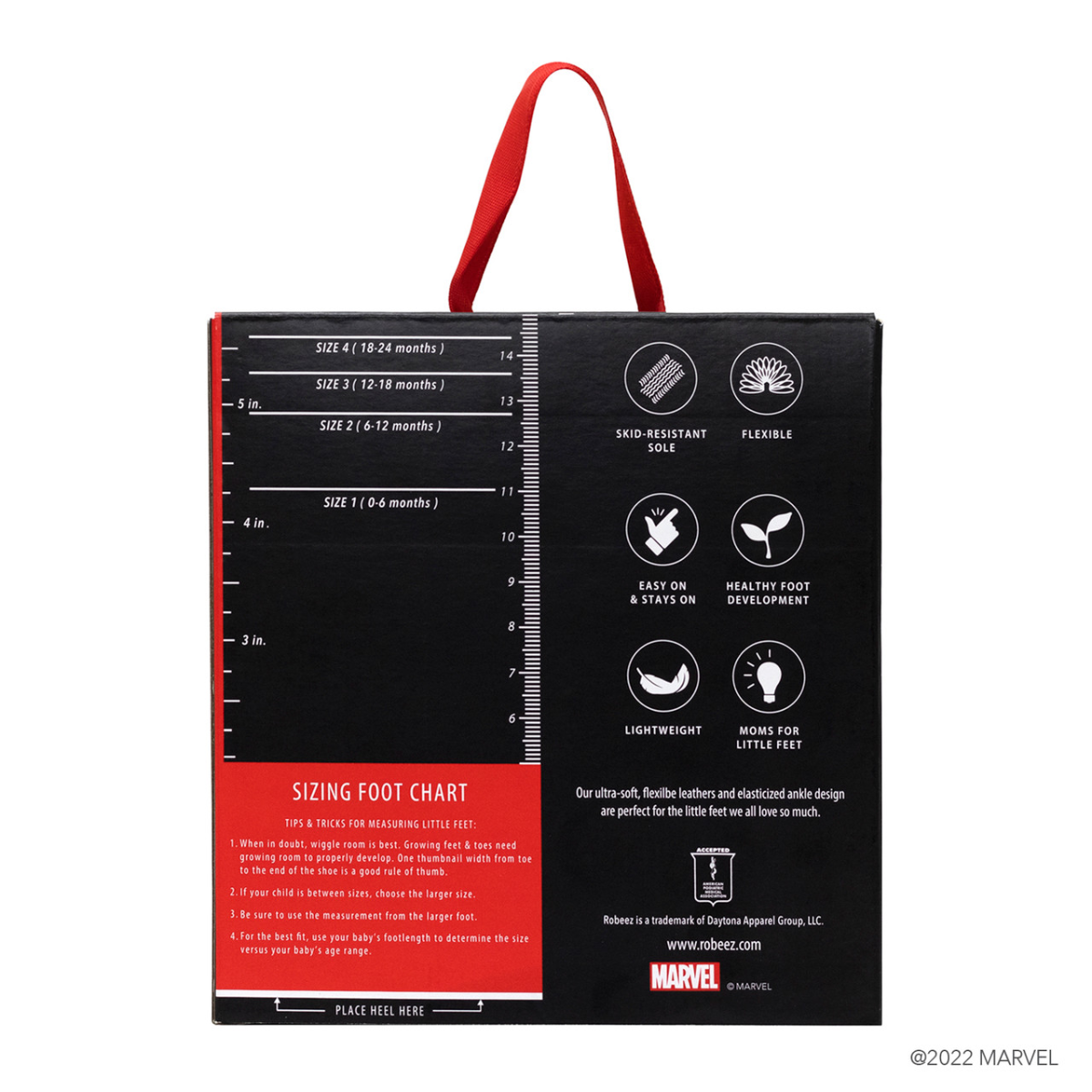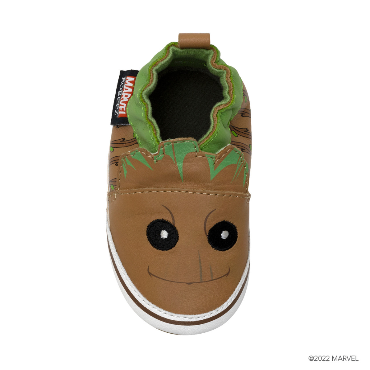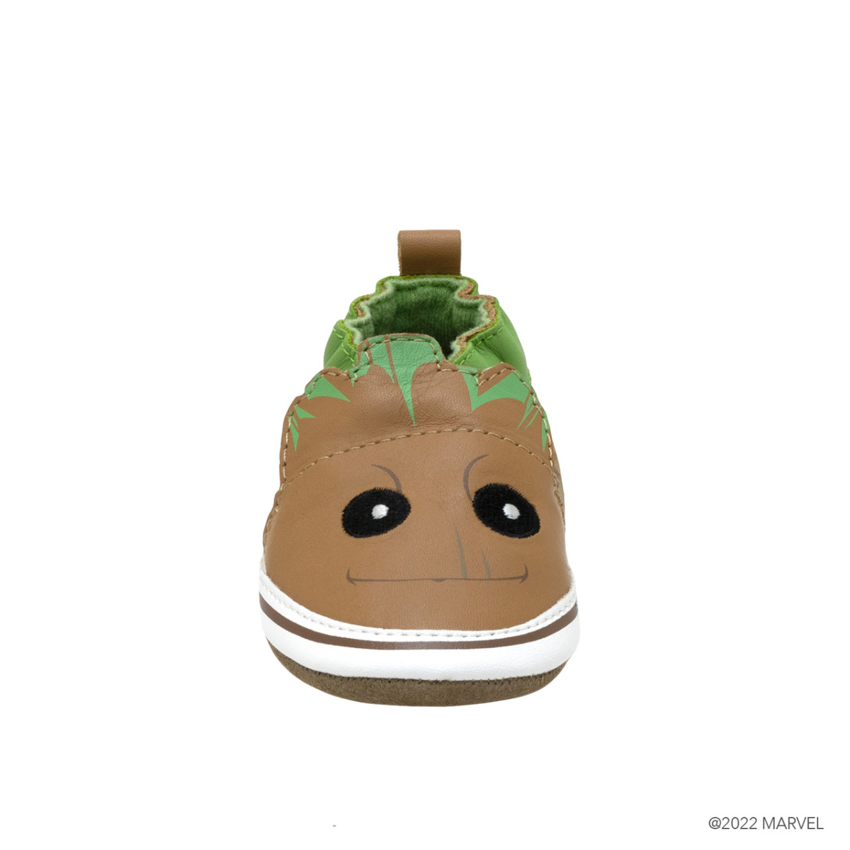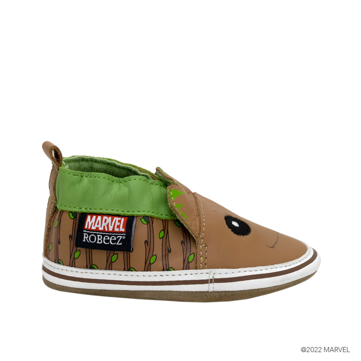 Les Robeez Marvel - Groot Soft Soles sont dotées d'adorables appliques en cuir qui en font le complément idéal de la garde-robe de votre bébé. La semelle en daim souple offre un soutien lors de la prise du sol et un toucher doux sur la peau de votre enfant.