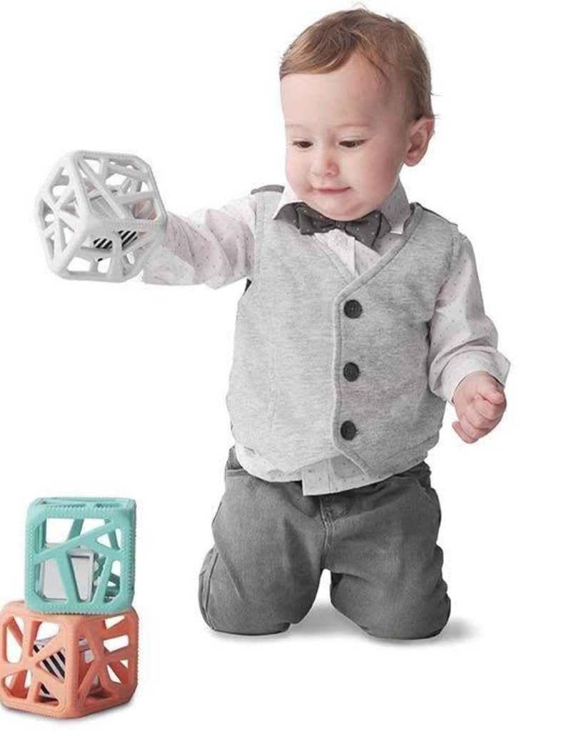 Le hochet cubique Chew Cube de Malarkey Kids est le jouet de dentition par excellence. Ses rebords souples et texturés soulagent les gencives pendant que le mini cube à l'intérieur stimule les sens de bébé.