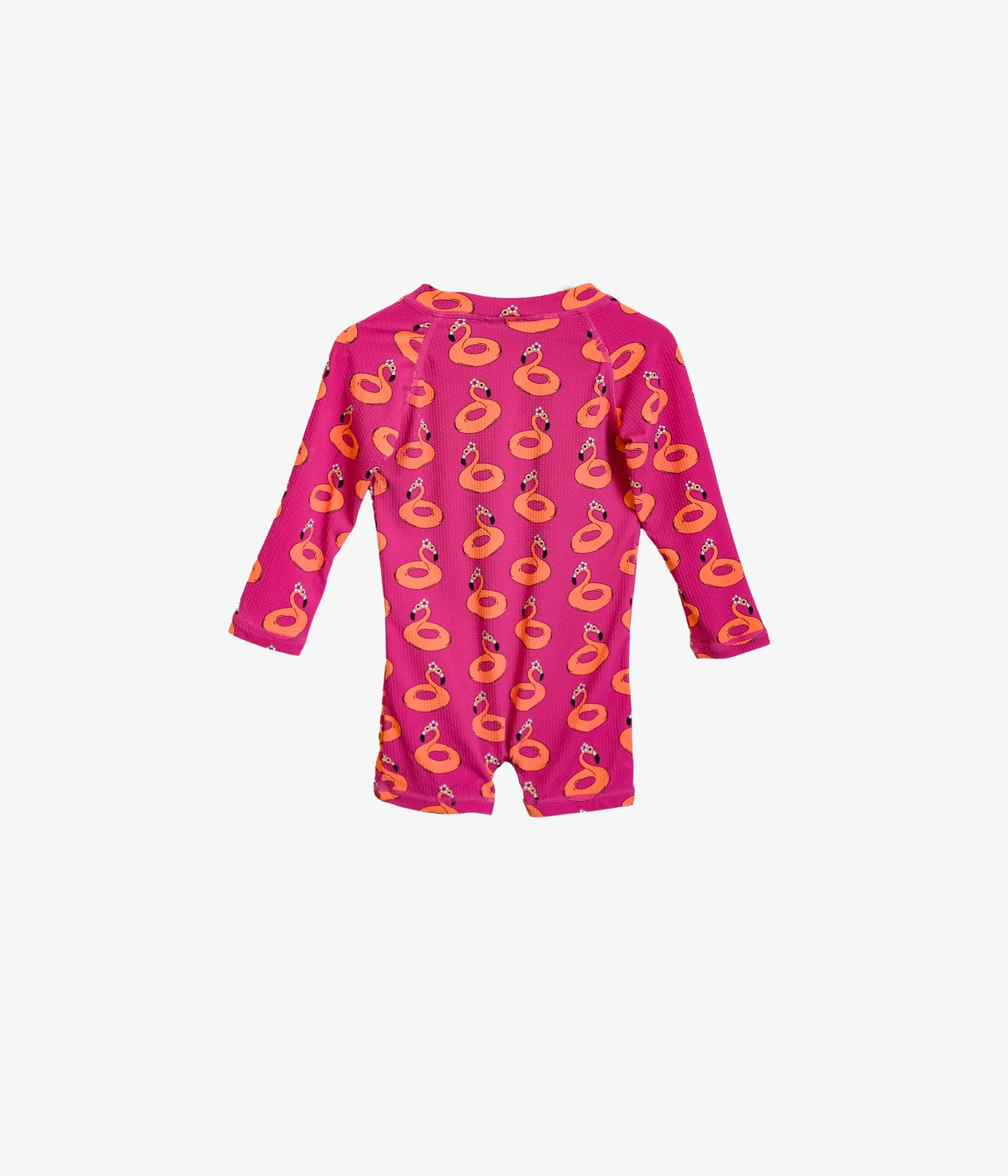 La conception en une seule pièce offre un ajustement sûr, maintenant le maillot de bain en place pendant qu'il s'éclabousse et joue.
