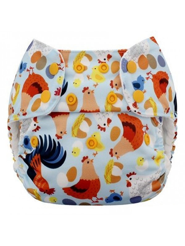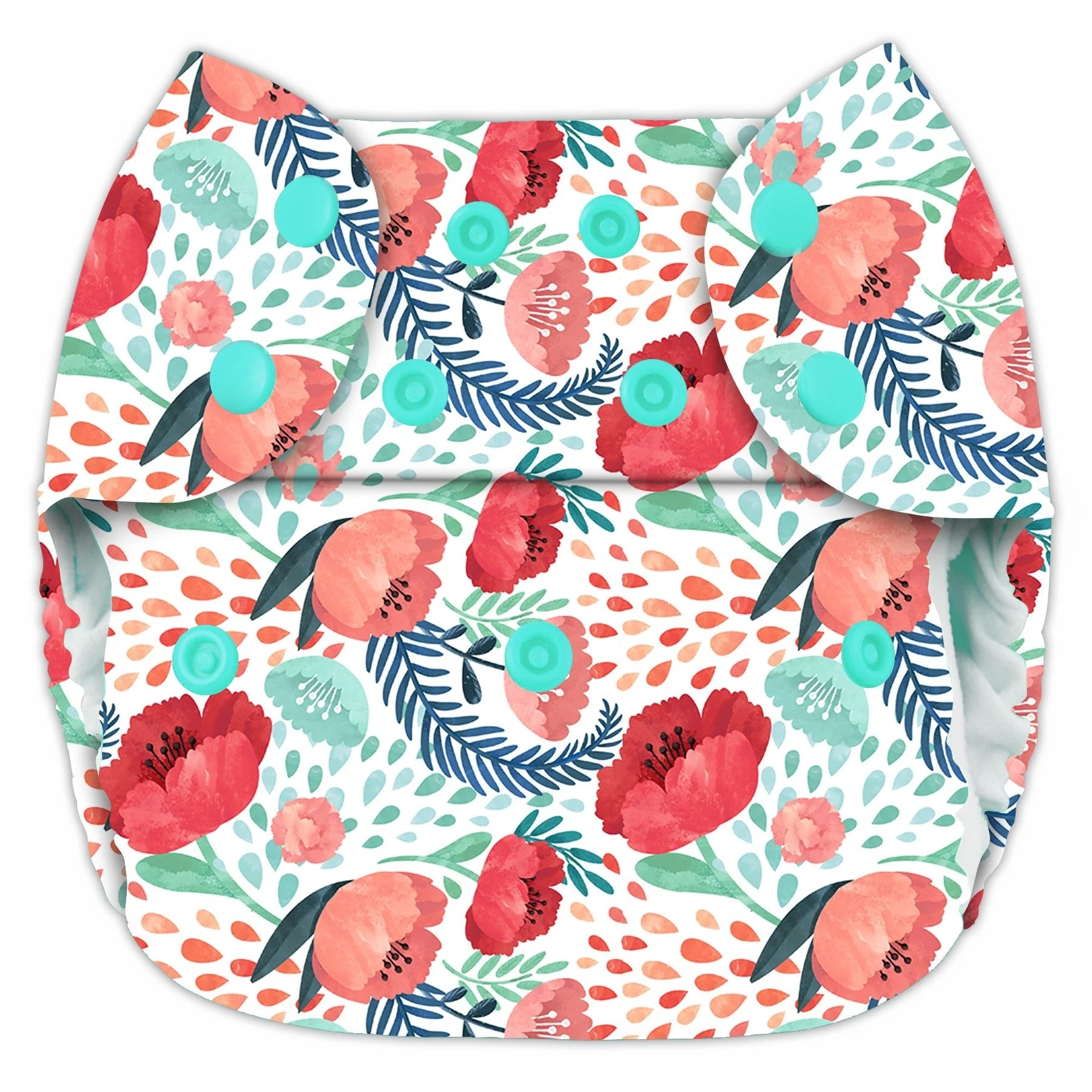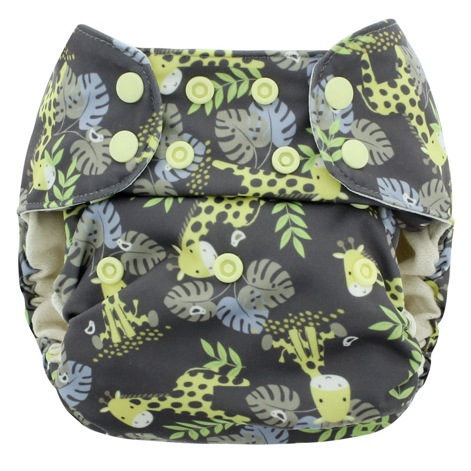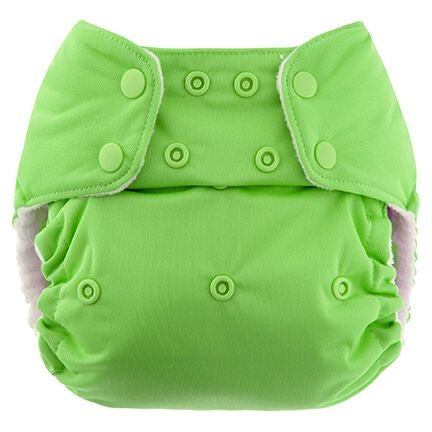Couche à poche à taille unique permettant un ajustement de la grandeur et du niveau d'absorption. Convient aux bébés de 10 à 35 livres. L'extérieur est fait de polyester laminé pour imperméabilisé la couche et l'intérieur est en micropolar pour garder la peau de bébé au sec. La couche vient avec 2 inserts de coton biologique, un petit nouveau-né et un plus long ajustable pour les tailles moyenne et grande. Le petit insert peu également être utilisé pour augmenter le niveau d'absorption lorsque nécessaire.