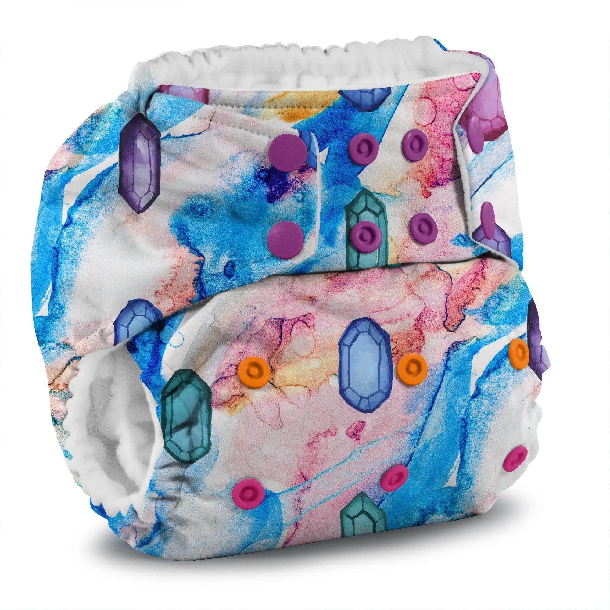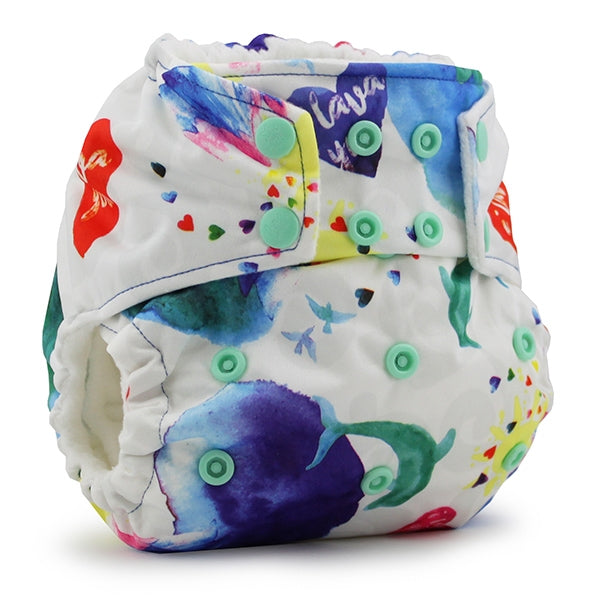 La couche à poche Rumparooz est la seule couche conçue en utilisant la technologie en instance de brevet des doubles goussets intérieurs pour prévenir les fuites. C'est une couche taille unique qui permet d'ajuster à 4 tailles. Elle fera de 6 lbs jusqu'à l'apprentissage de la propreté. Aucun besoin de renouveler le stock de couches quand le bébé grandit. Vient avec un Insert de microfibre 6r de Rumparooz.