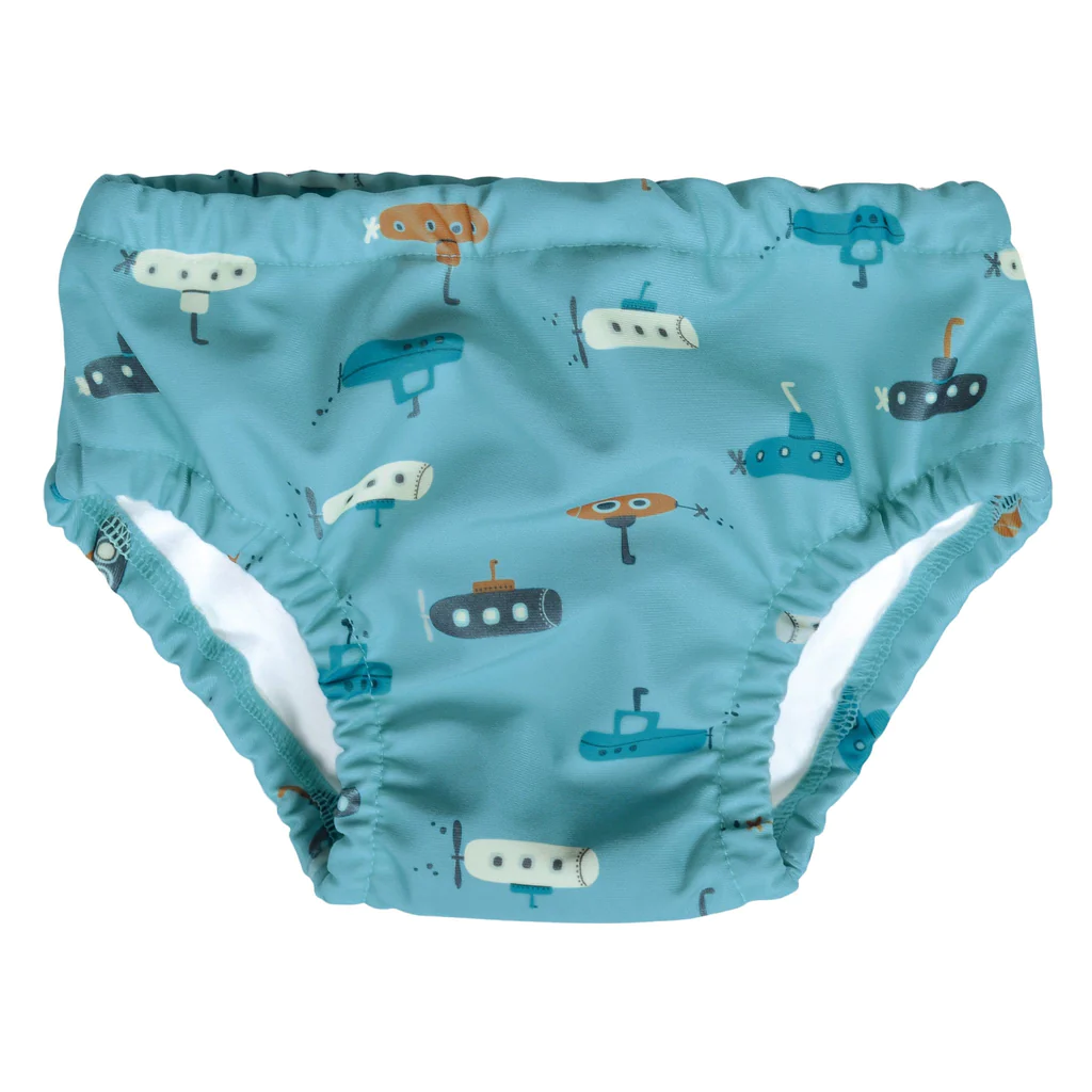 Pratique couche de baignade pour tout-petits. Fabriquée dans un tissu avec protection solaire FPU50+ pour protéger les tout-petits des petits accidents et du soleil tout l'été. À agencer avec son t-shirt de plage Perlim Pinpin coordonné.