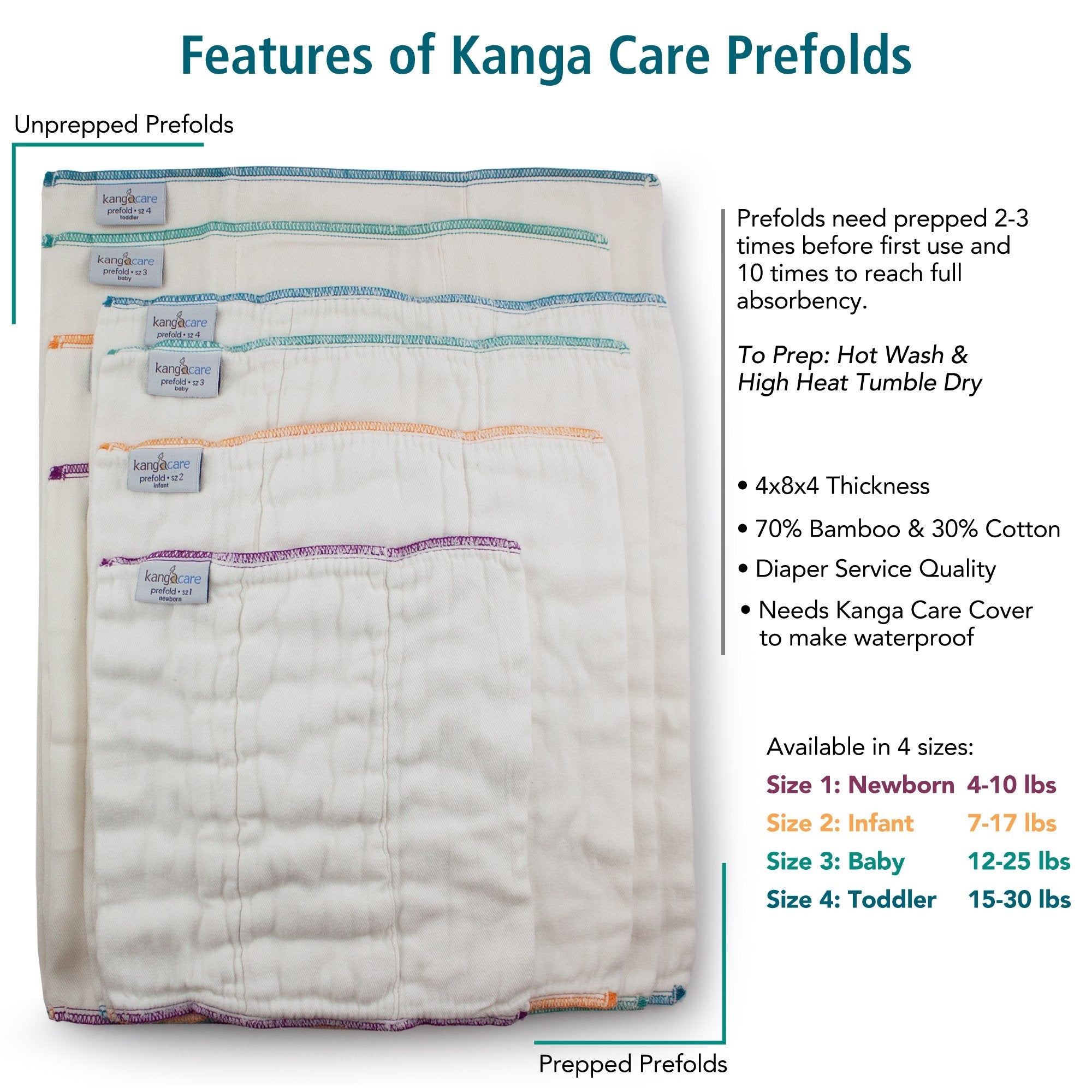 Les couches pré-pliées doivent être lavées et séchées à haute température 2-3 fois avant la première utilisation.