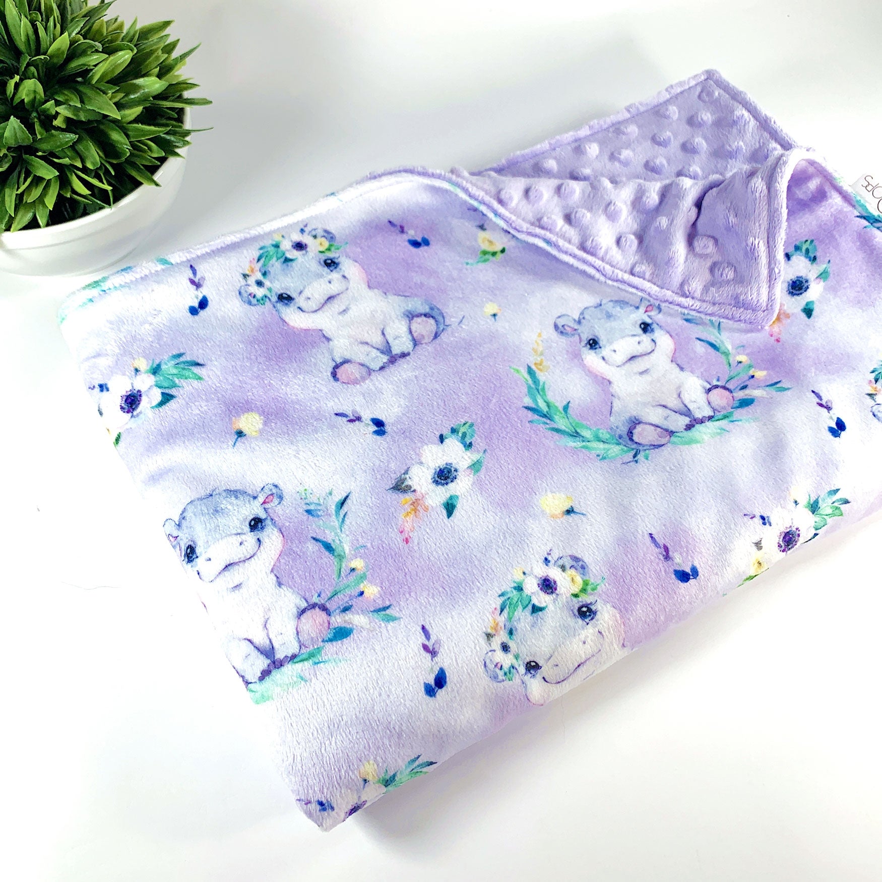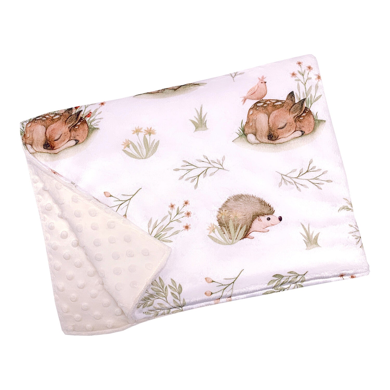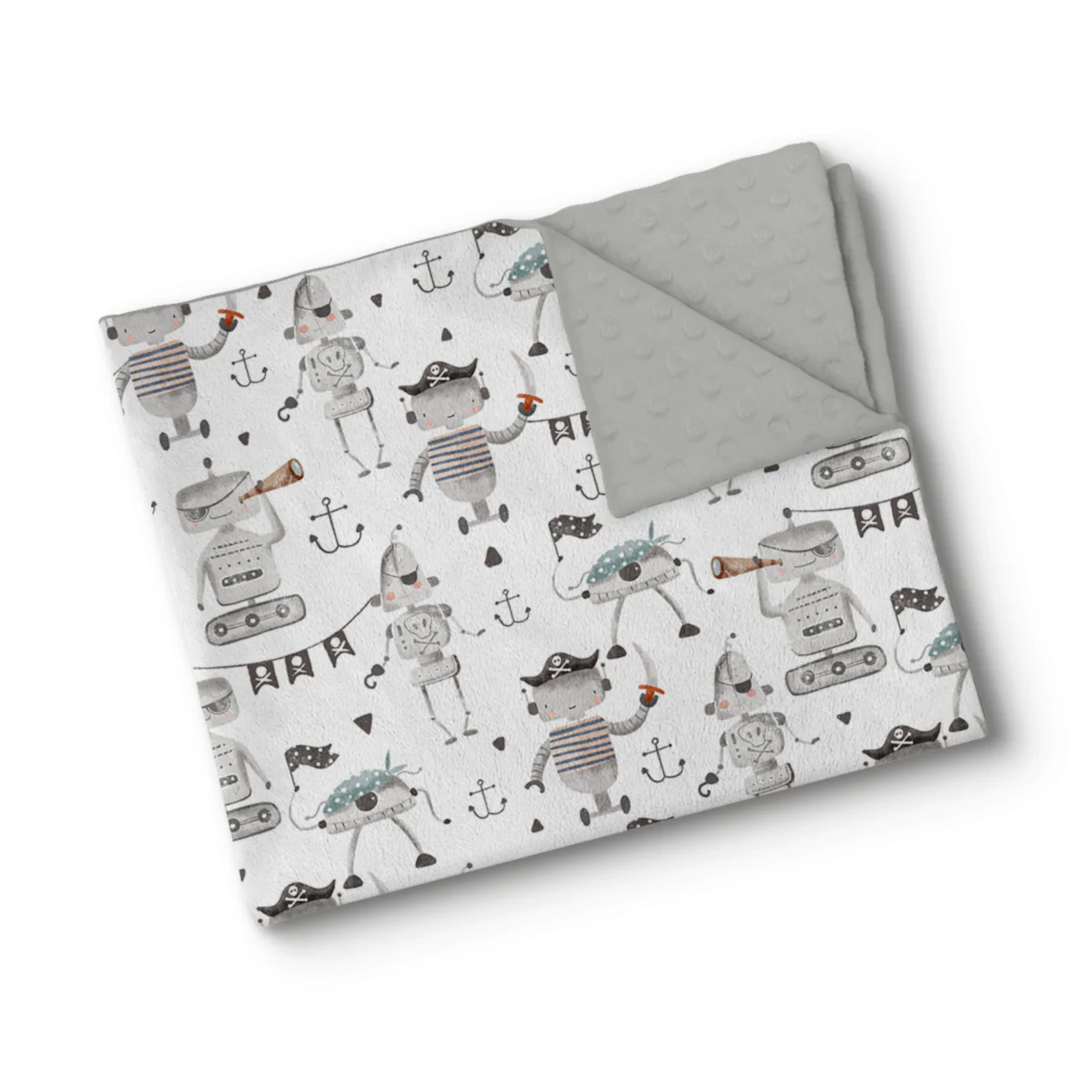 Entièrement en minky à motif d'un côté et en minky dot uni de l'autre.