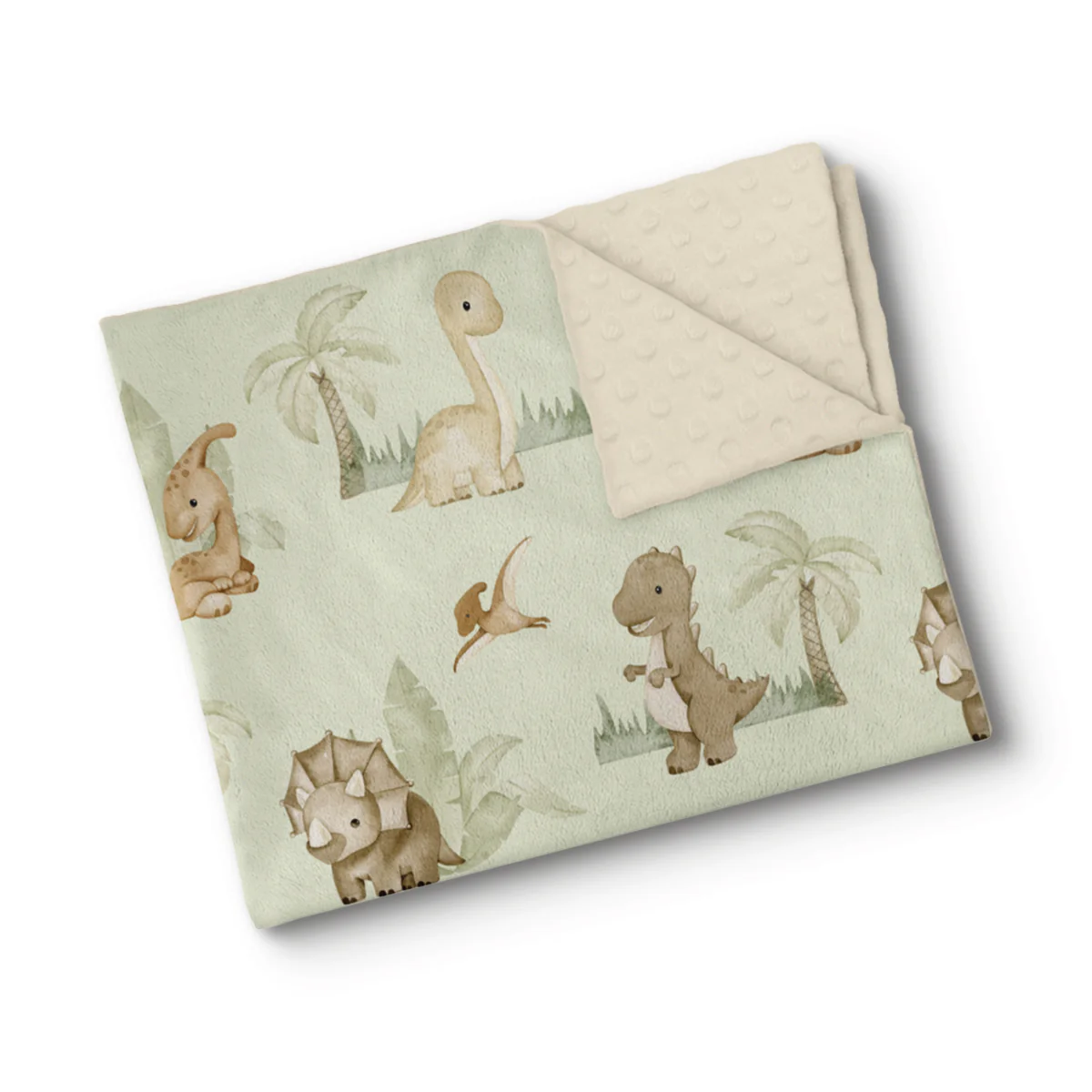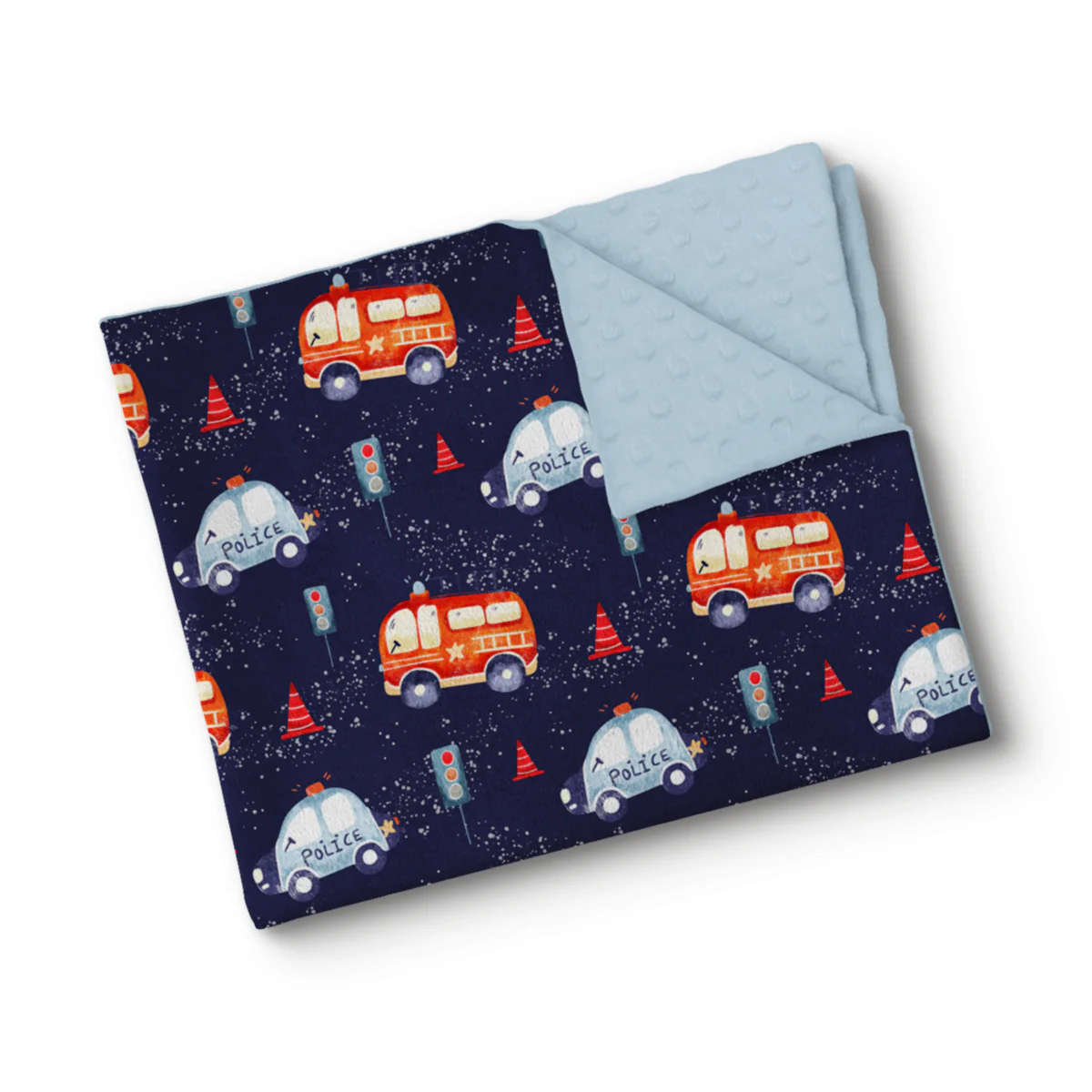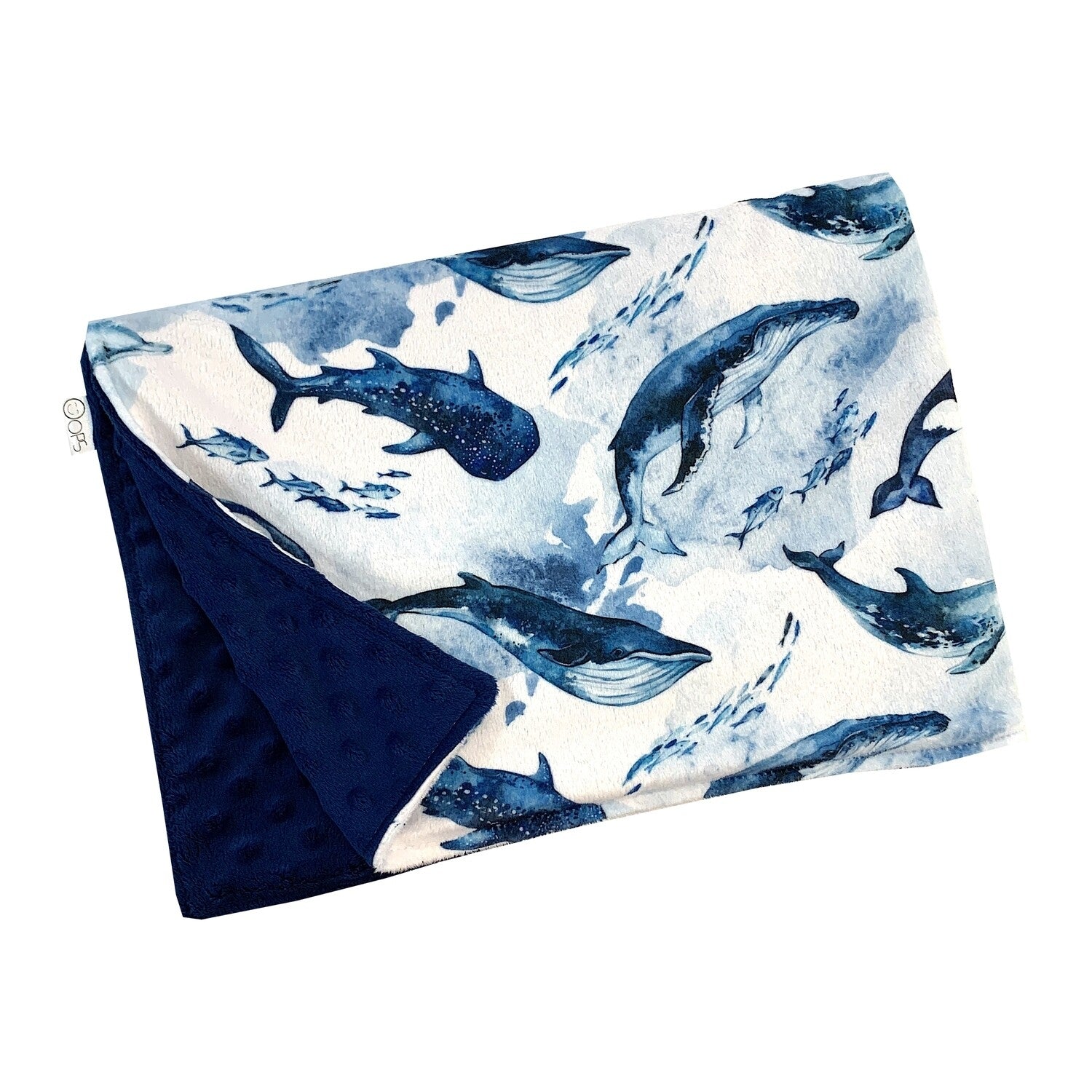 Entièrement en minky à motif d'un côté et en minky dot uni de l'autre.