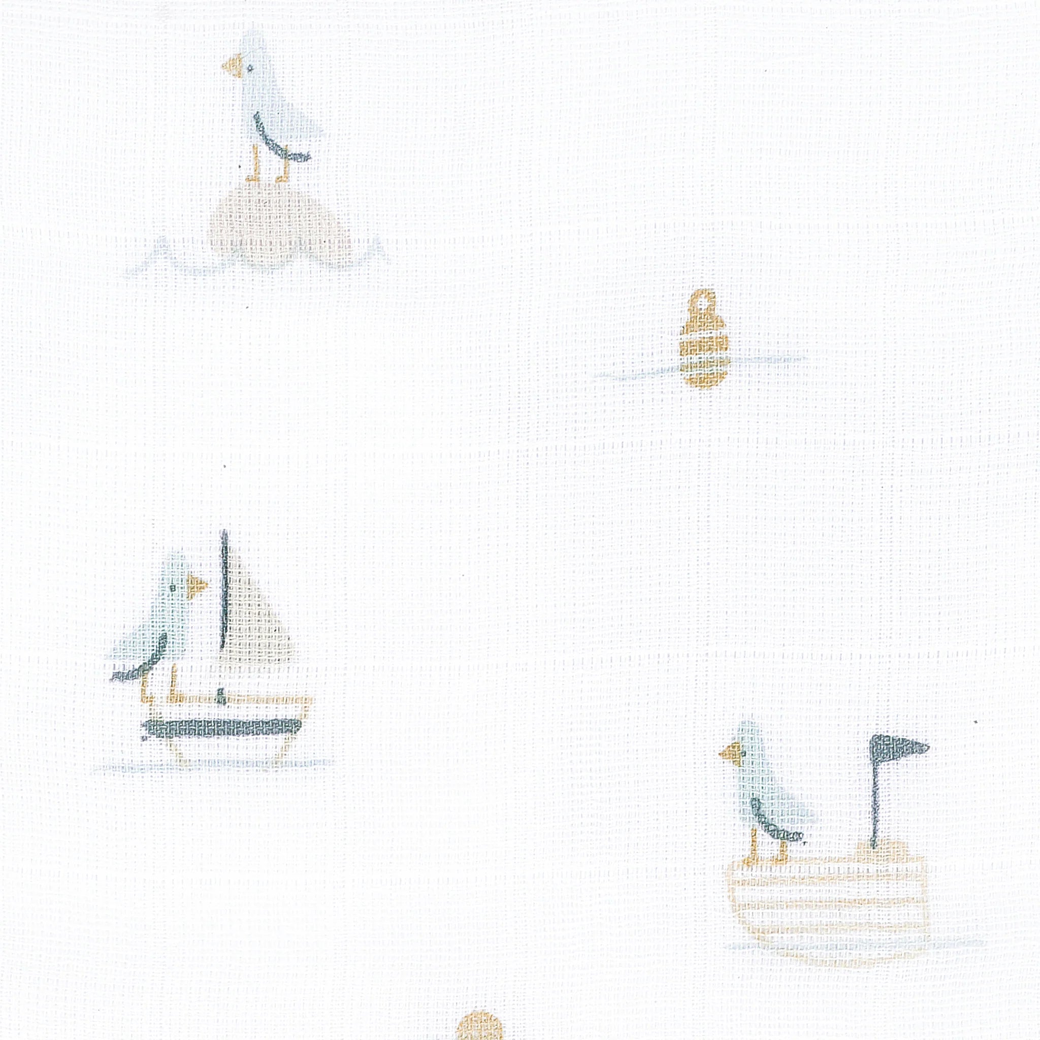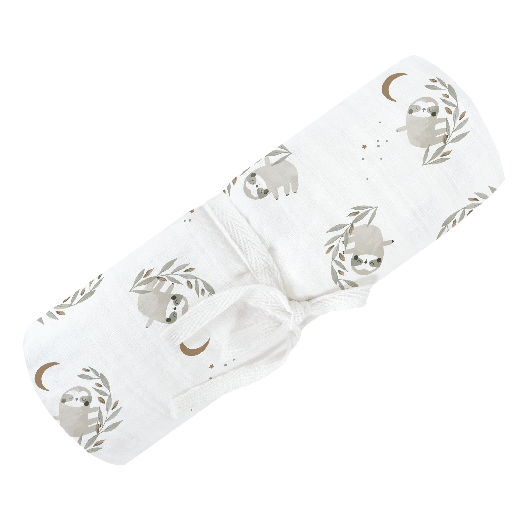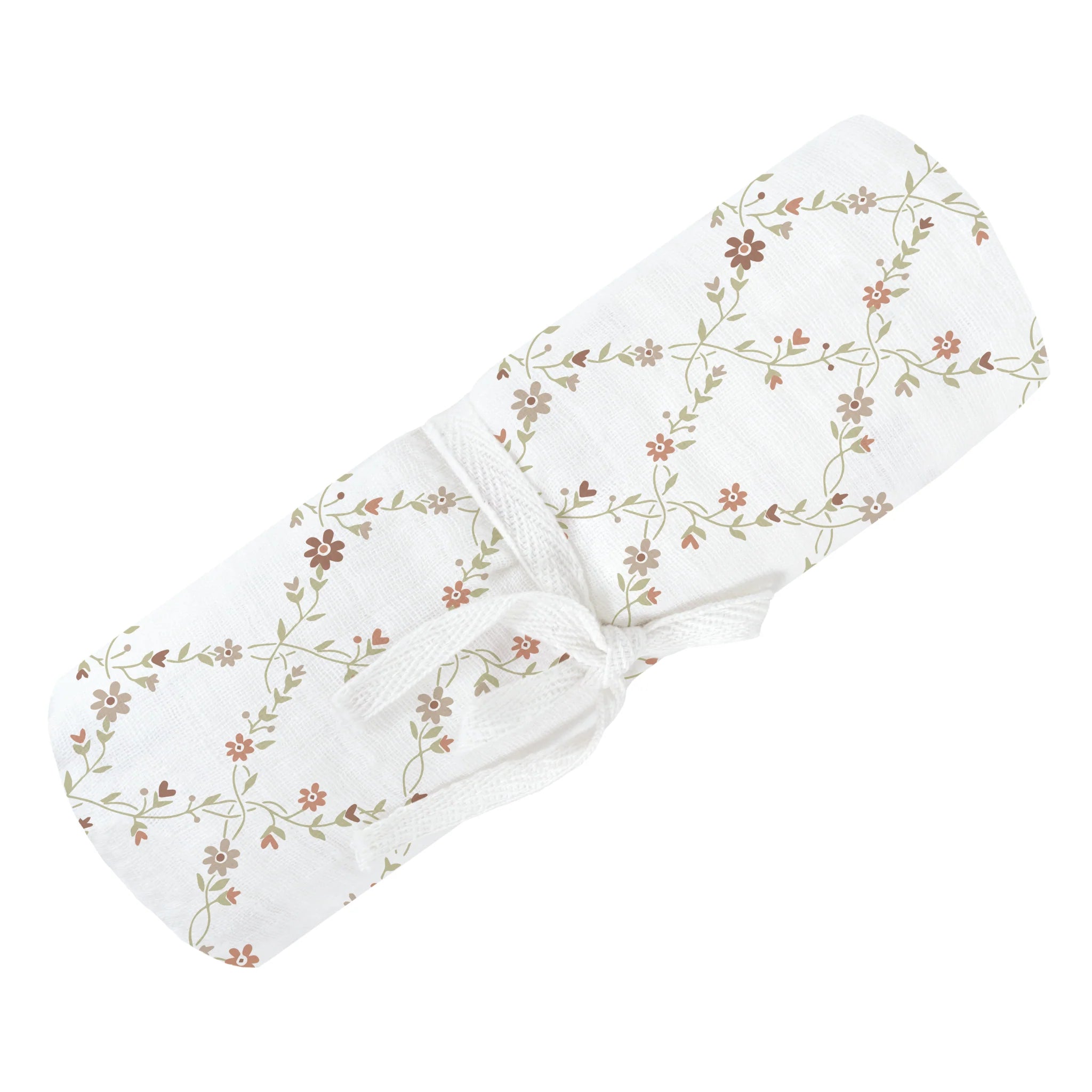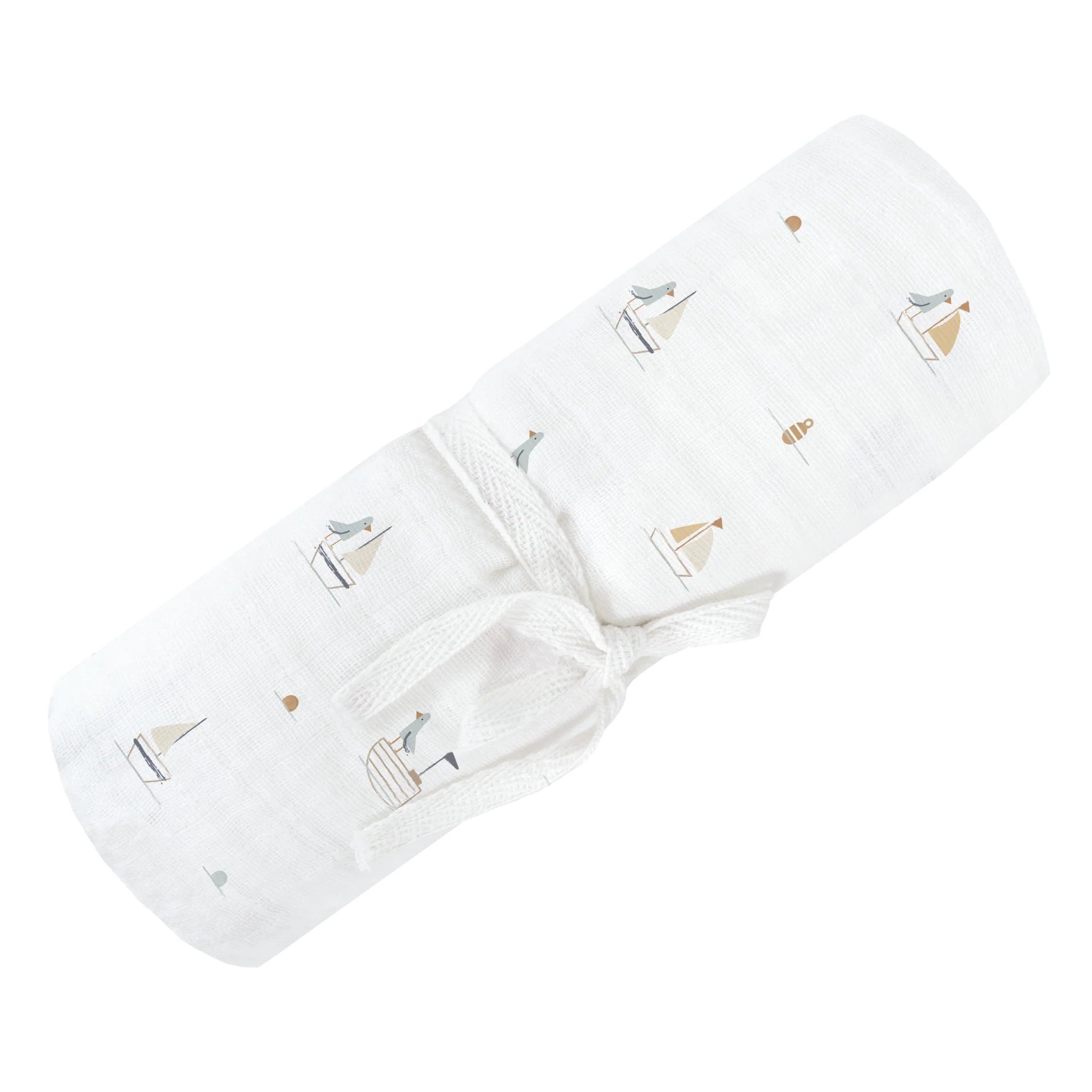 Couverture d'emmaillotage de mousseline 100% coton de Perlim Pinpin. Pré-lavée et ultra légère, cette couverture multi-usages en mousseline est de manière à permettre à l’air de circuler de façon optimale