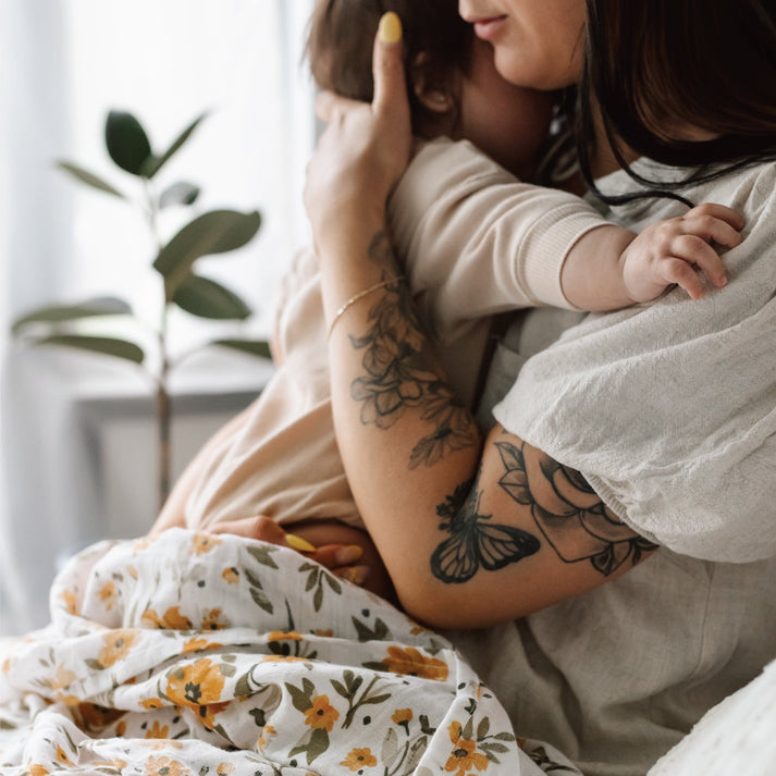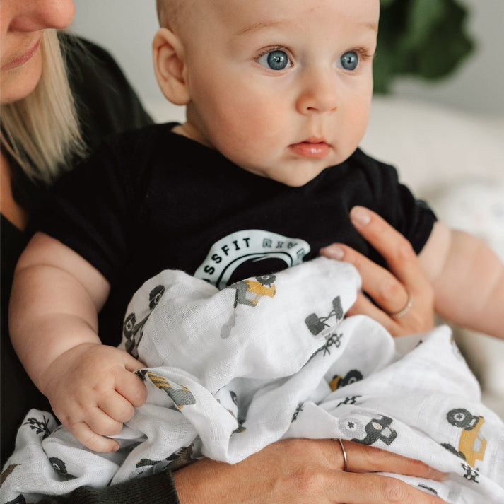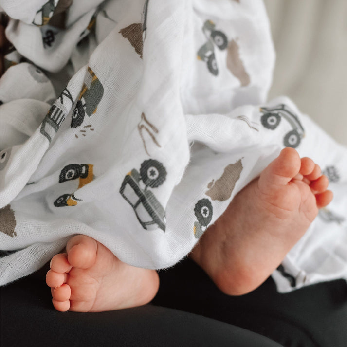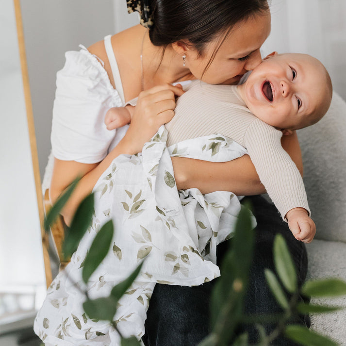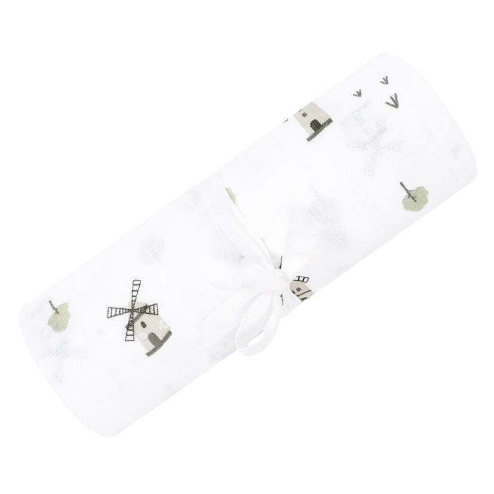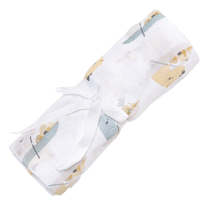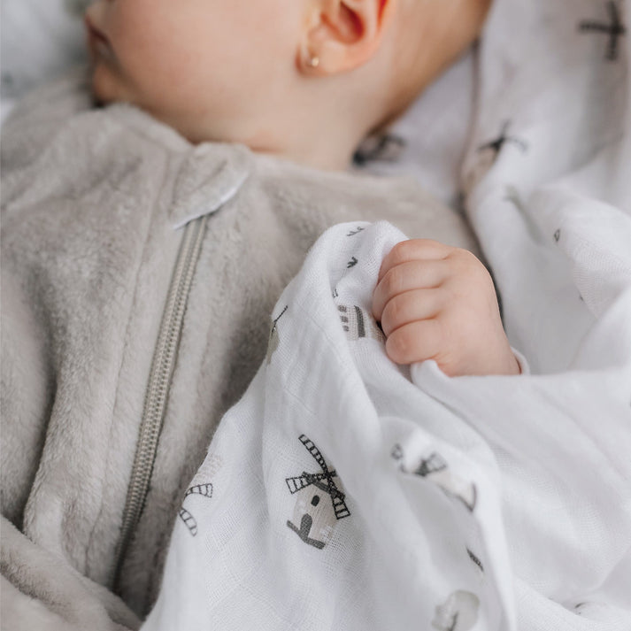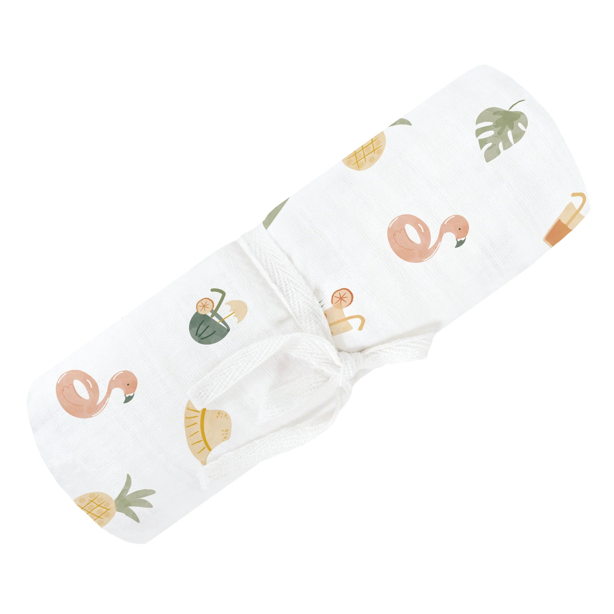 Couverture d'emmaillotage de mousseline 100% coton de Perlim Pinpin. Pré-lavée et ultra légère, cette couverture multi-usages en mousseline est de manière à permettre à l’air de circuler de façon optimale