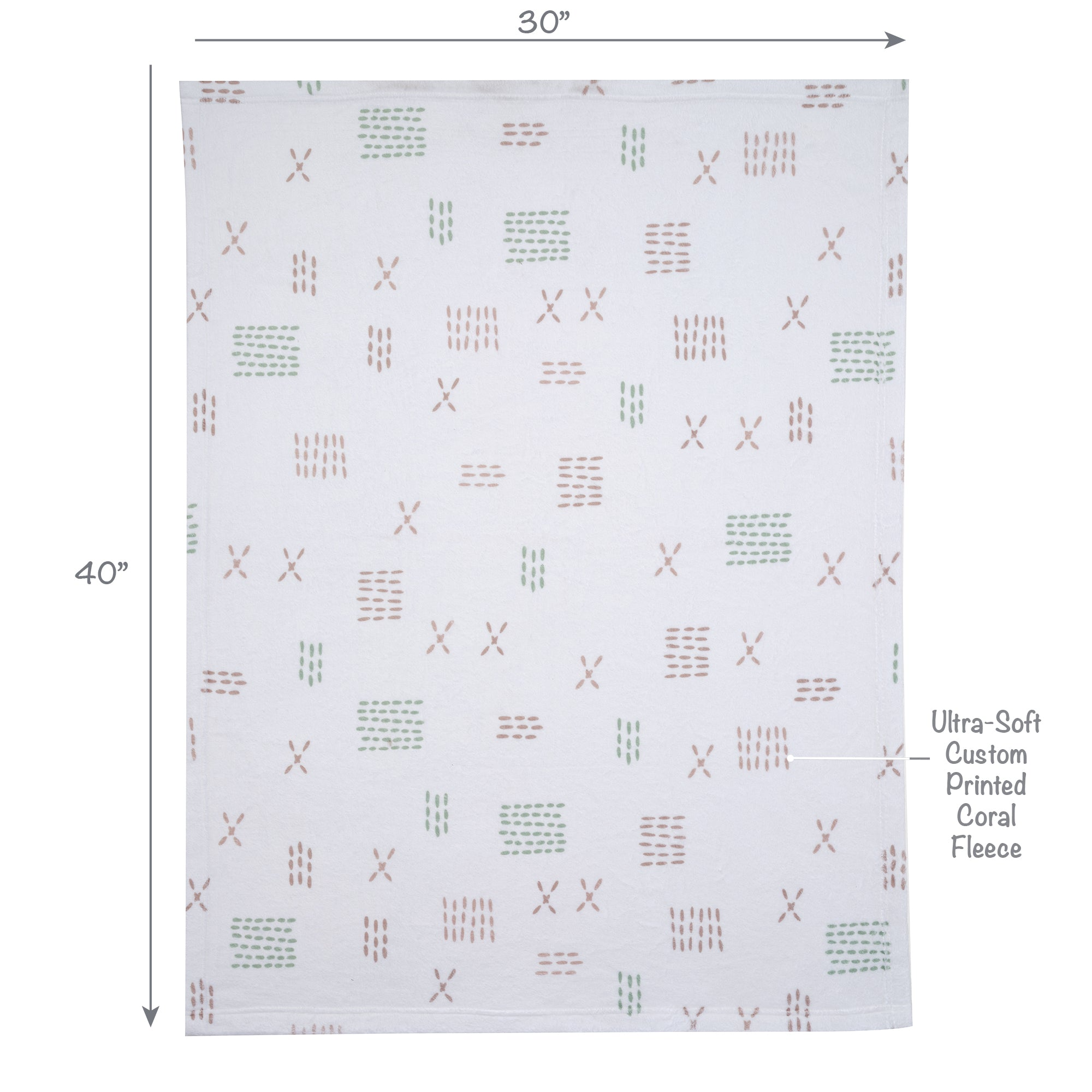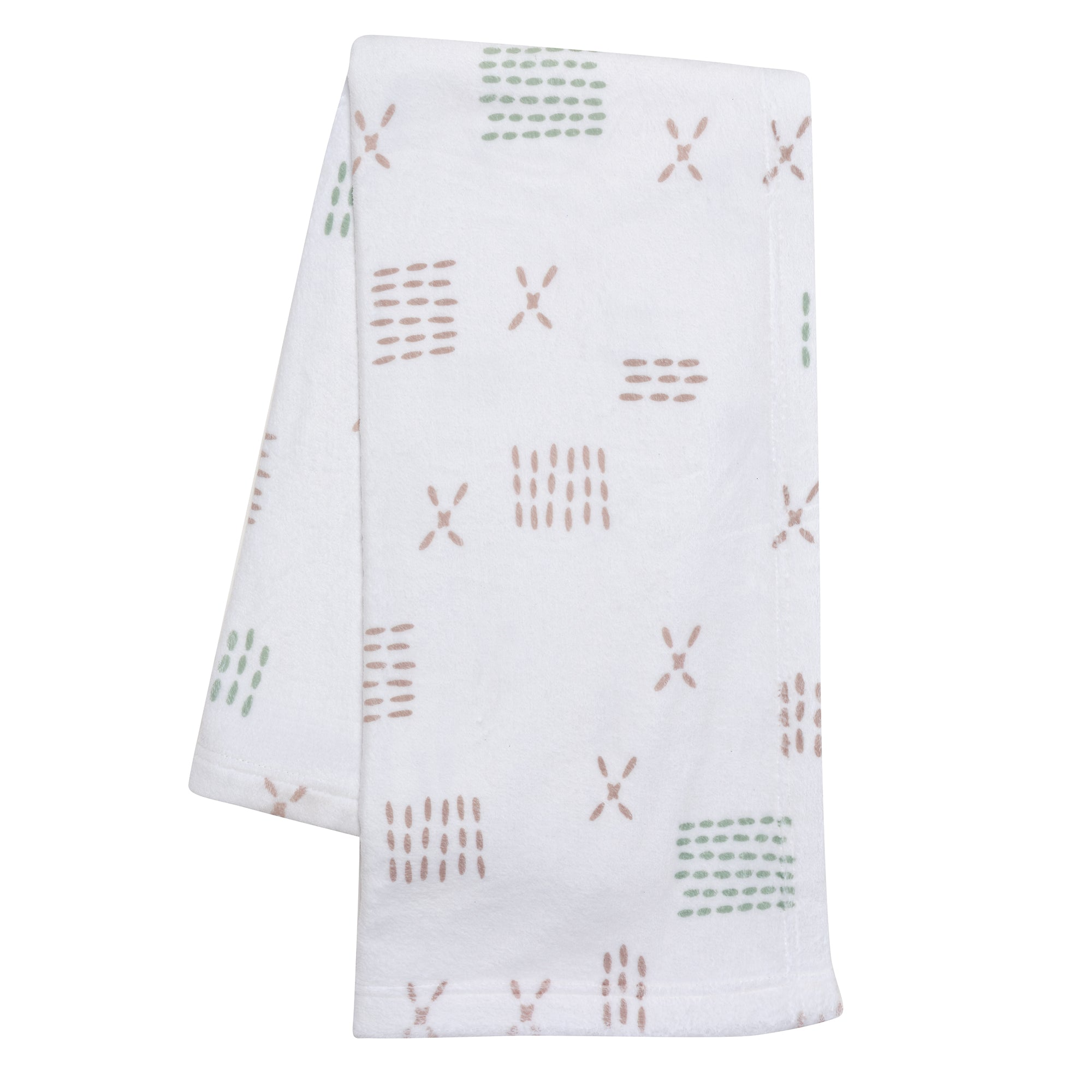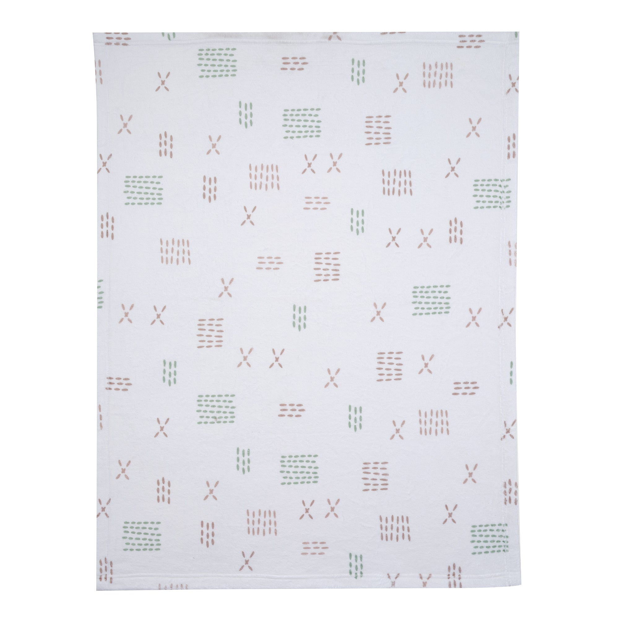 - Motif composé de petits groupes de points et de lignes taupe et sauge sur fond blanc doux.