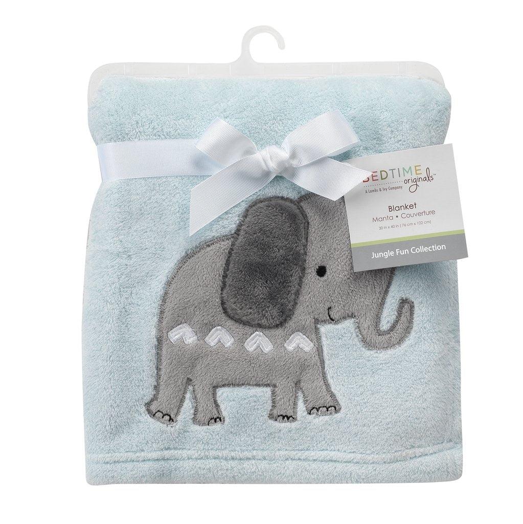 La couverture pour bébé de la collection Jungle Fun est conçue par Lambs and Ivy. Elle s'offre très bien en cadeau de shower ou de naissance pour un nouveau-né. Elle est entièrement faite d'un tissu bleu doux et chaud. Un joli éléphant est brodé sur le coin inférieur droit de la doudou. Le tissu est en polyester ce qui la rend facile d'entretien et donc parfaite pour utiliser dans la coquille, dans la poussette ou pour mettre bébé au sol. Sa grandeur de 30 x 40 po est parfaite pour protéger votre enfant des intempéries comme le vent et le froid.