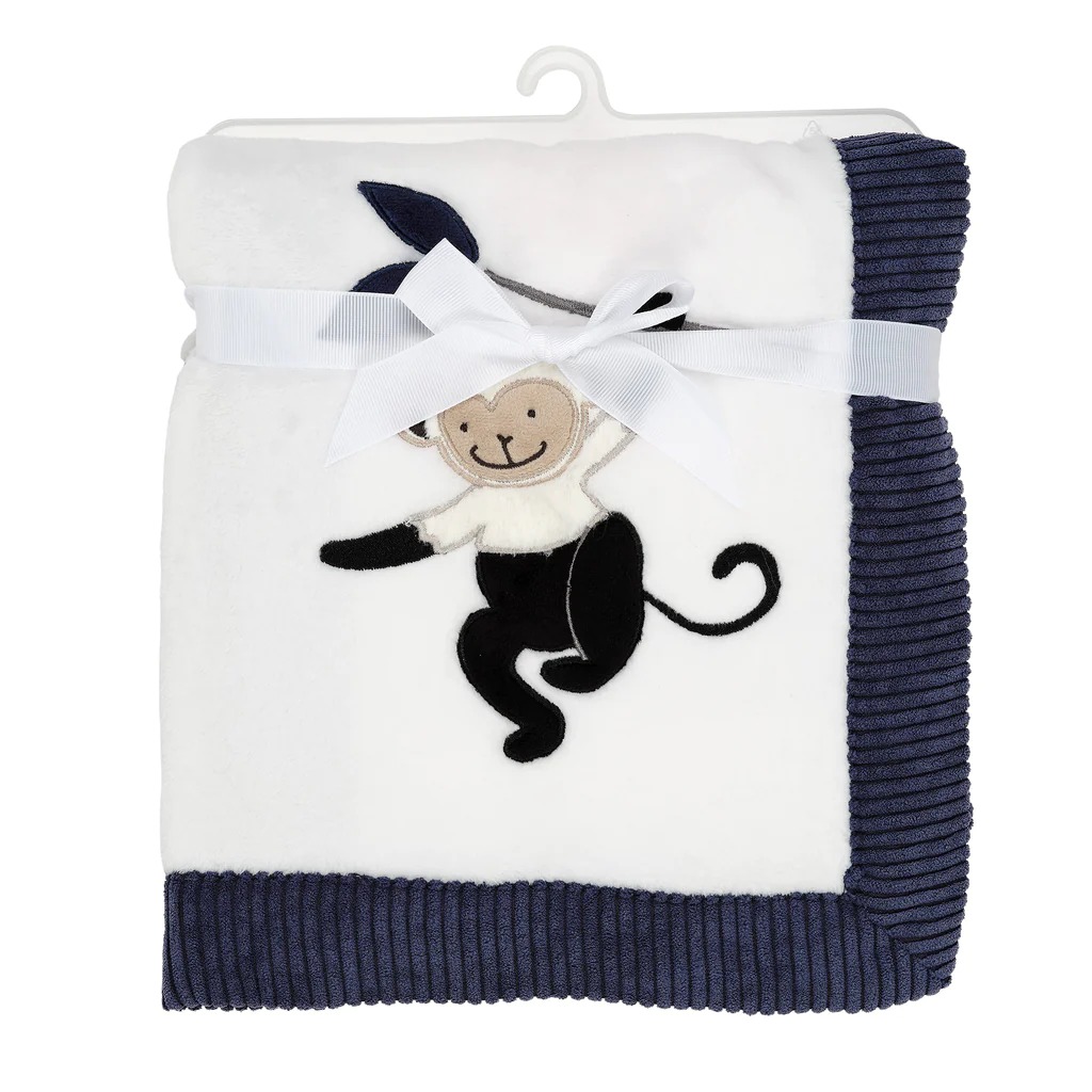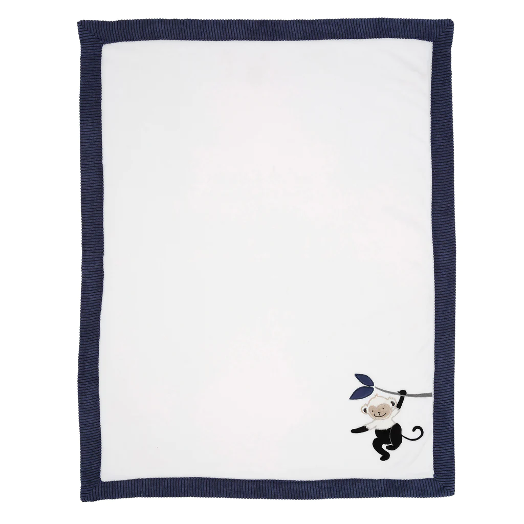 Votre petit aventurier sera bien au chaud avec cette couverture en polaire super douce. D'une taille parfaite de 30" x 40", elle est idéale pour les câlins. Elle est fabriquée en fausse fourrure de polyester blanche à poils longs avec une bordure en velours côtelé marine.