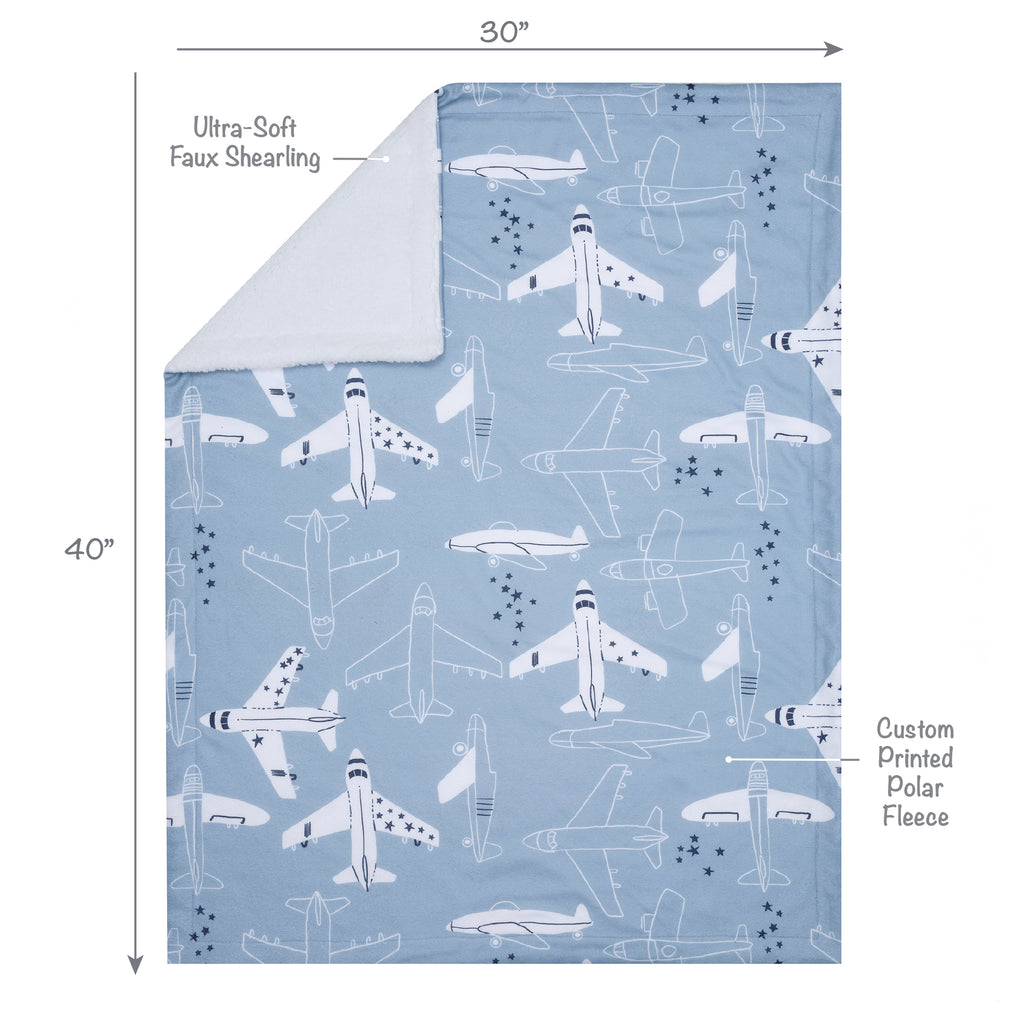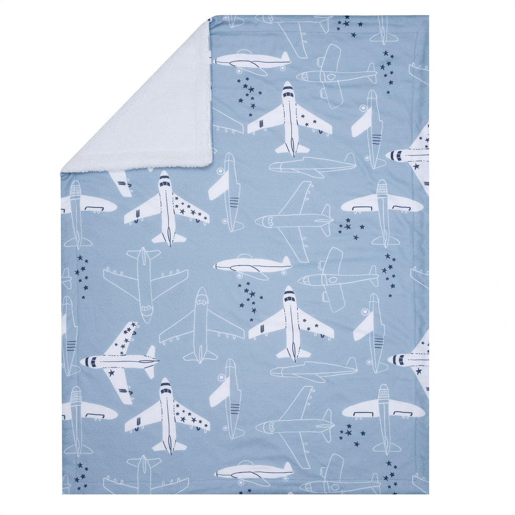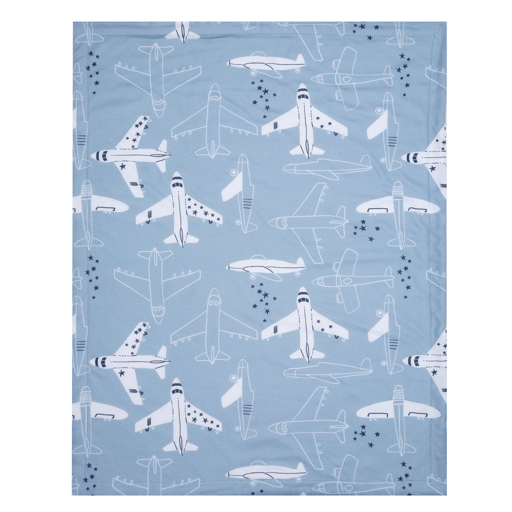 - Couverture avant en polaire douce et douillette avec des avions stylisés