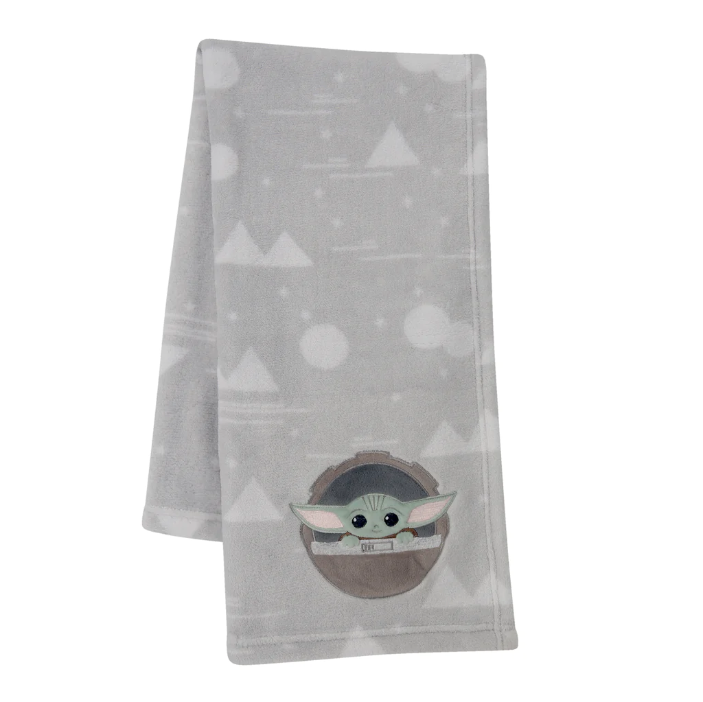 - Baby Yoda appliqué sous licence officielle Star Wars en velours vert céladon avec un visage brodé