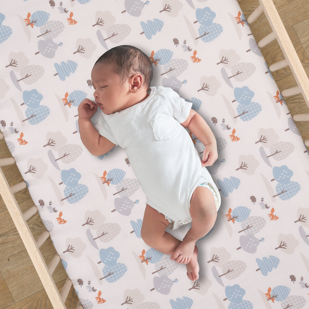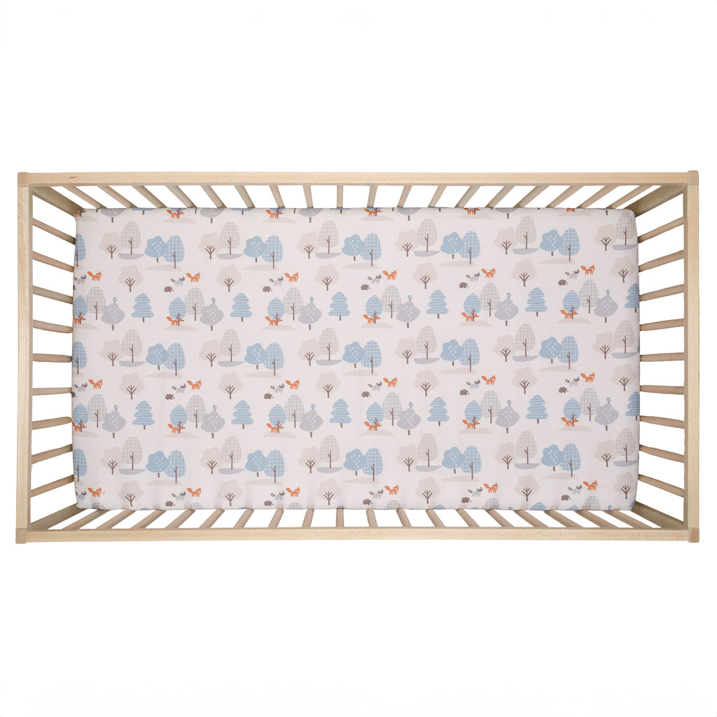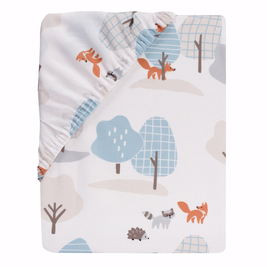 - Des arbres, des renards, des ratons laveurs, des hérissons et des oiseaux décorent cet adorable drap de lit à thème boisé.