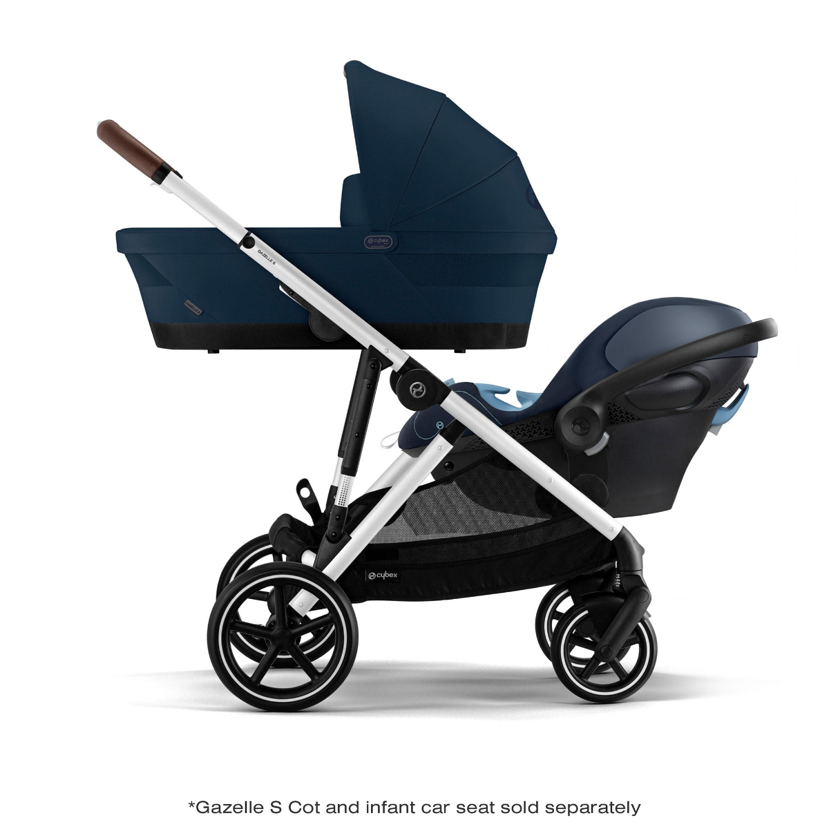 En s'adaptant aux évolutions de la famille, la Gazelle S peut se convertir facilement d'une poussette simple à une poussette double sans adaptateurs supplémentaires. Conçue pour supporter plus de 20 configurations différentes, la Gazelle S comprend un siège réversible inclinable presque à plat, mais elle est aussi compatible avec notre nacelle Gazelle S et tous les sièges d'auto pour nourrisson de CYBEX pour une utilisation dès la naissance.