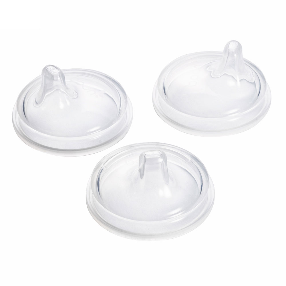 Facilité la transition du biberon au gobelet, grâce à cet ensemble de 3 Becs de transition. Changez la tétine pour les embouts « becs de transition » 100% silicone. Ils sont conçus pour s'adapter parfaitement aux coques des bouteilles NURSH (vendu séparément) .