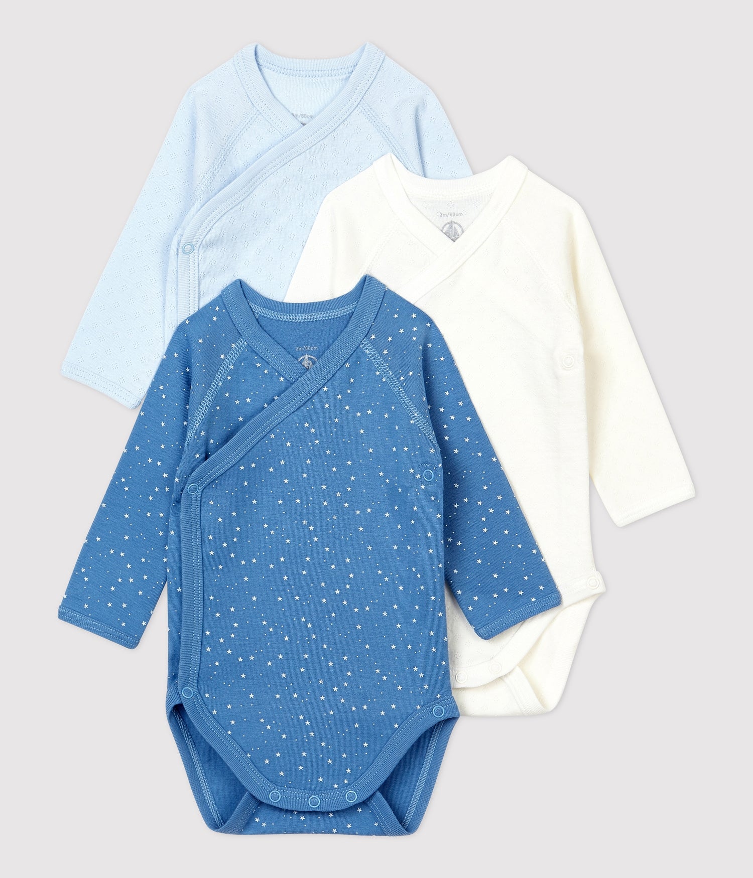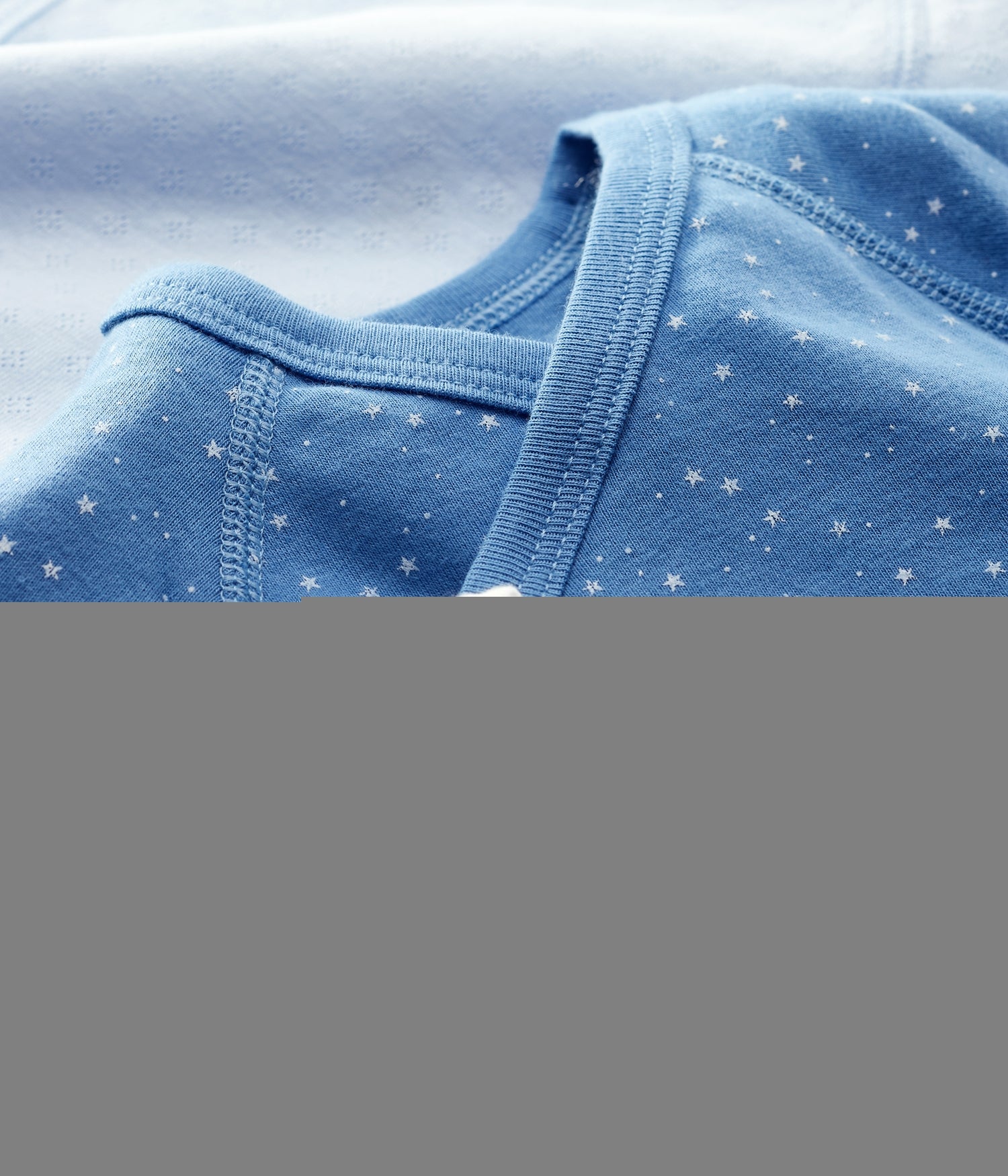 - Couleurs bleu pâle, bleu foncé aux motifs d'étoiles et crème.