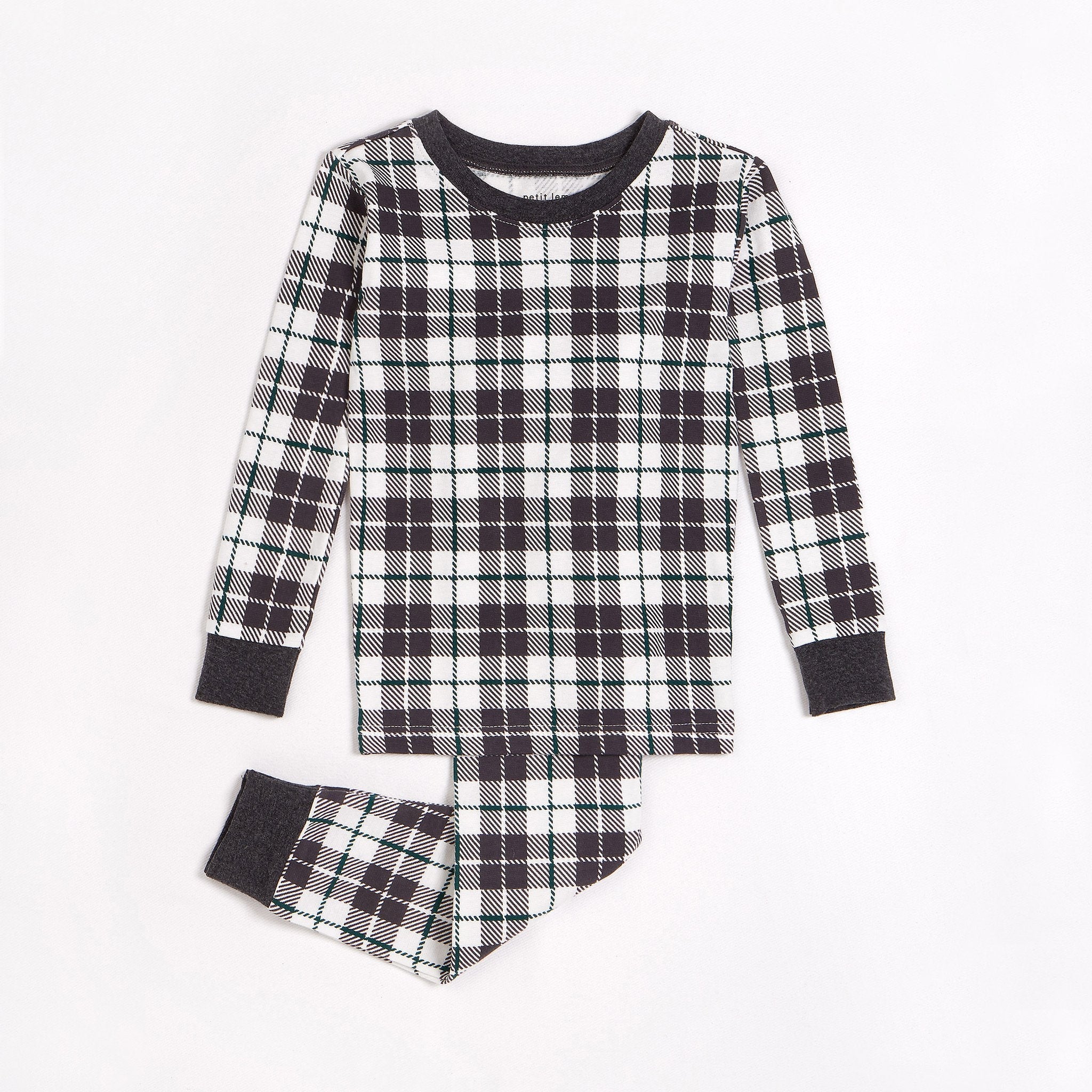 Cet ensemble de pyjama à carreaux Forrest comprend un haut à manches longues et un pantalon élastique. Chaque pièce est finie avec des poignets et des chevilles élastiques pour qu'ils soient libres de courir et de jouer toute la journée. L'ensemble permet de s'habiller facilement le matin, ce qui leur laisse beaucoup plus de temps pour jouer dans la neige.