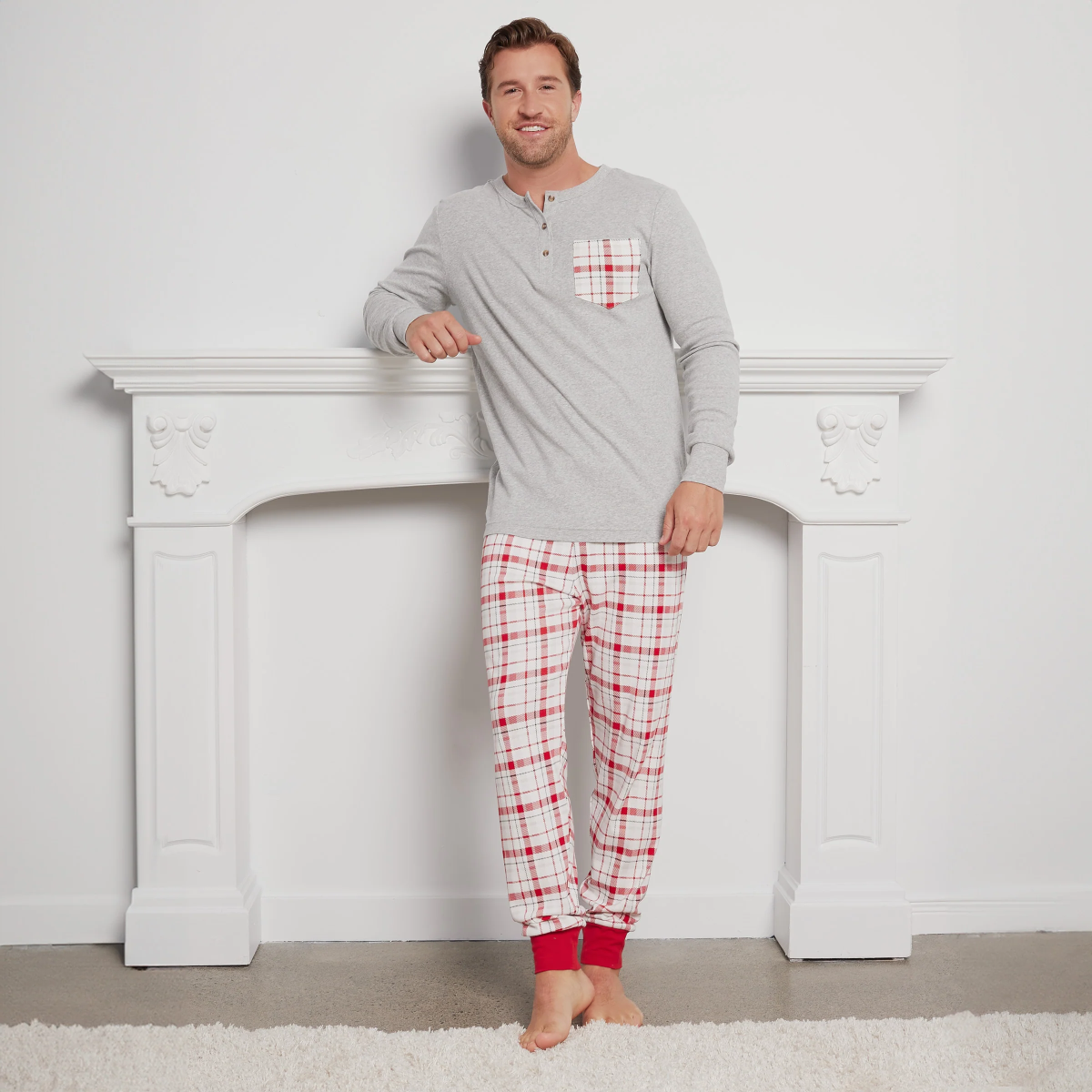Ce pyjama de Noël à carreaux pour homme est parfaitement coordonné avec les vêtements de nuit de la même gamme pour maman et les enfants, ce qui est parfait pour prendre une jolie photo de famille.