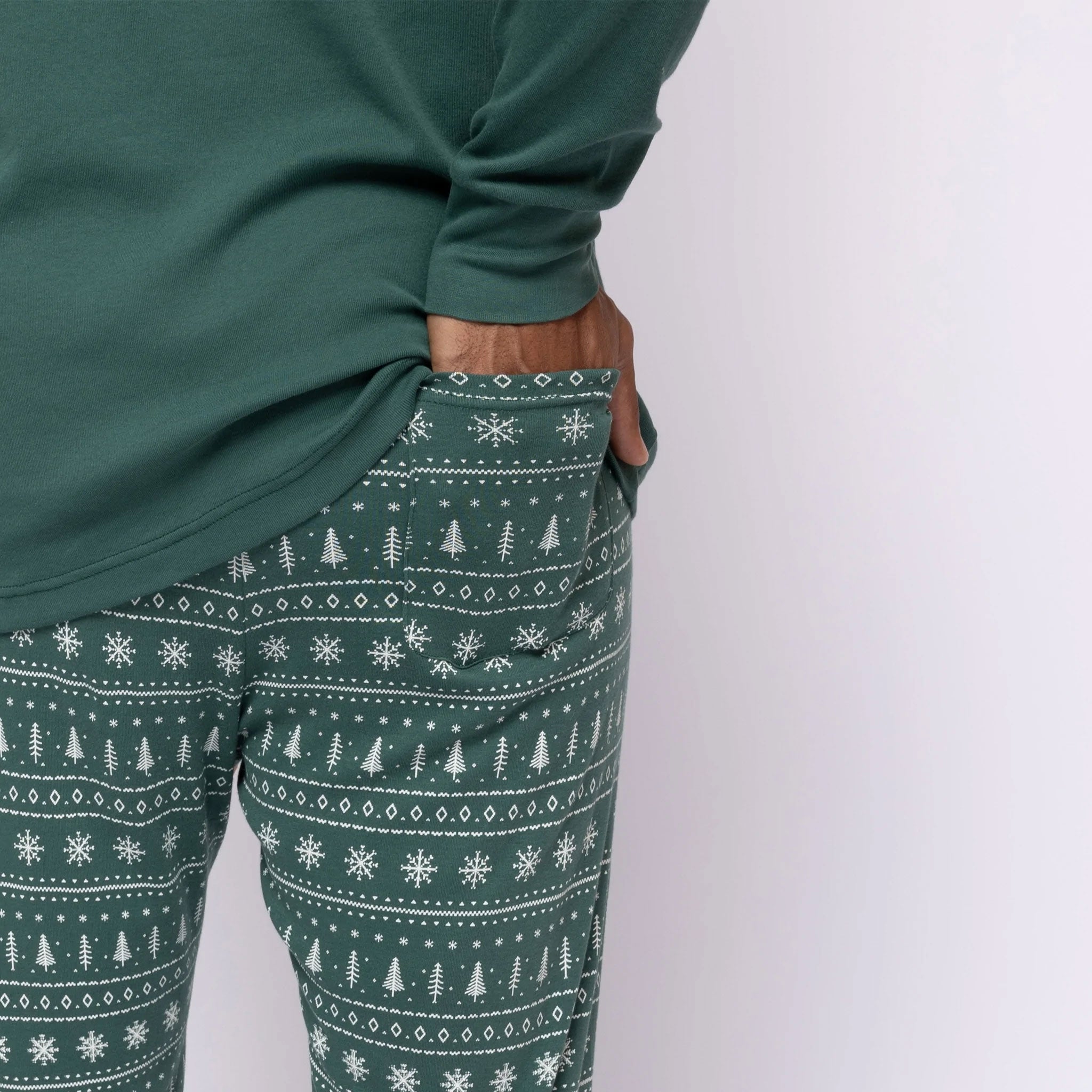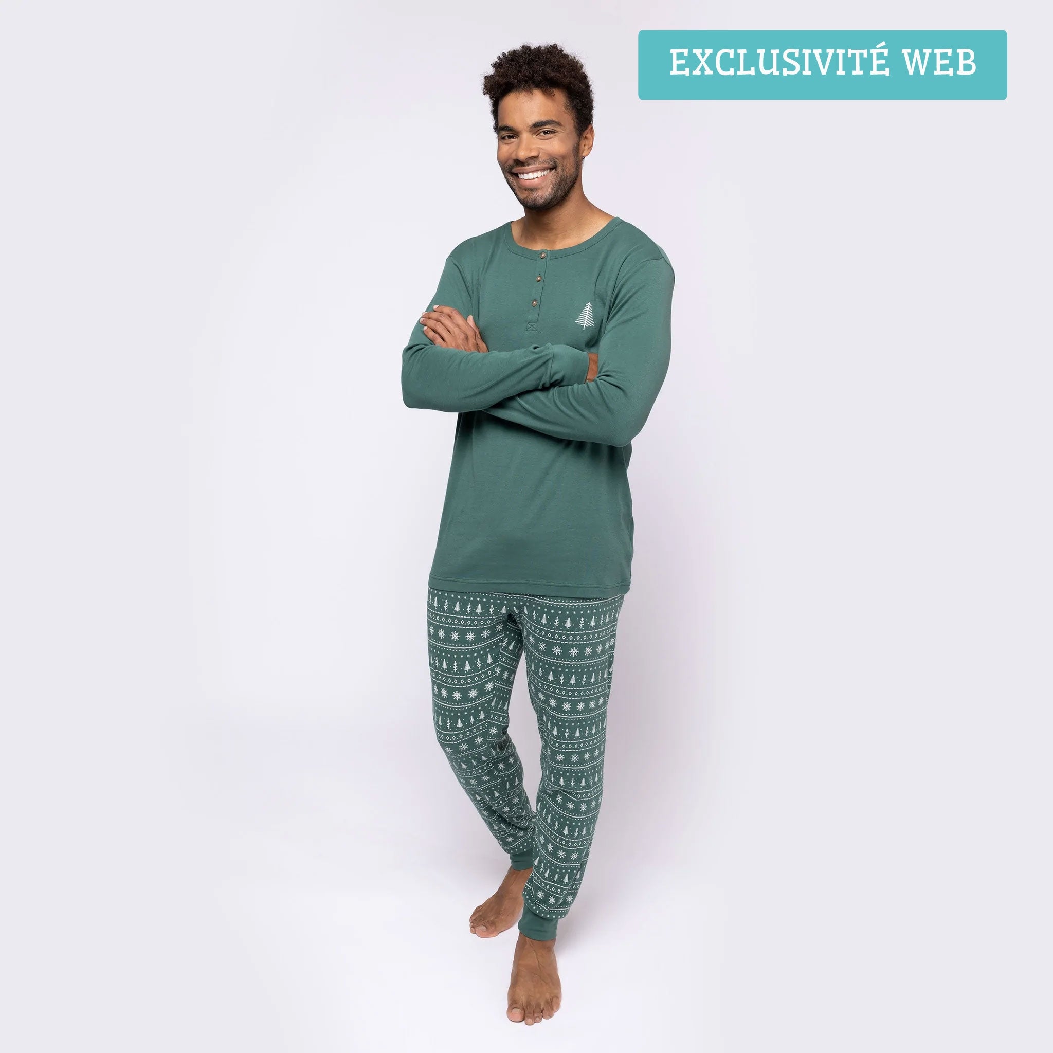 Vêtu de ce pyjama de Noël, papa sera prêt à participer aux festivités avec toute la famille, puisque des modèles assorties sont disponibles pour les enfants et maman. L’ensemble deux pièces comprend un haut henley à manches longues et orné d’un sapin de Noël sur la poitrine, et un pantalon long imprimé jacquard. Ce pyjama douillet est confectionné dans un coton biologique côtelé d’une douceur infinie, qui sera parfait pour les sieste festives, pour jouer avec les enfants ou pour se détendre après un repas en famille.