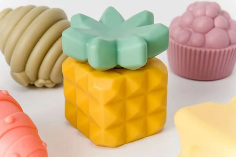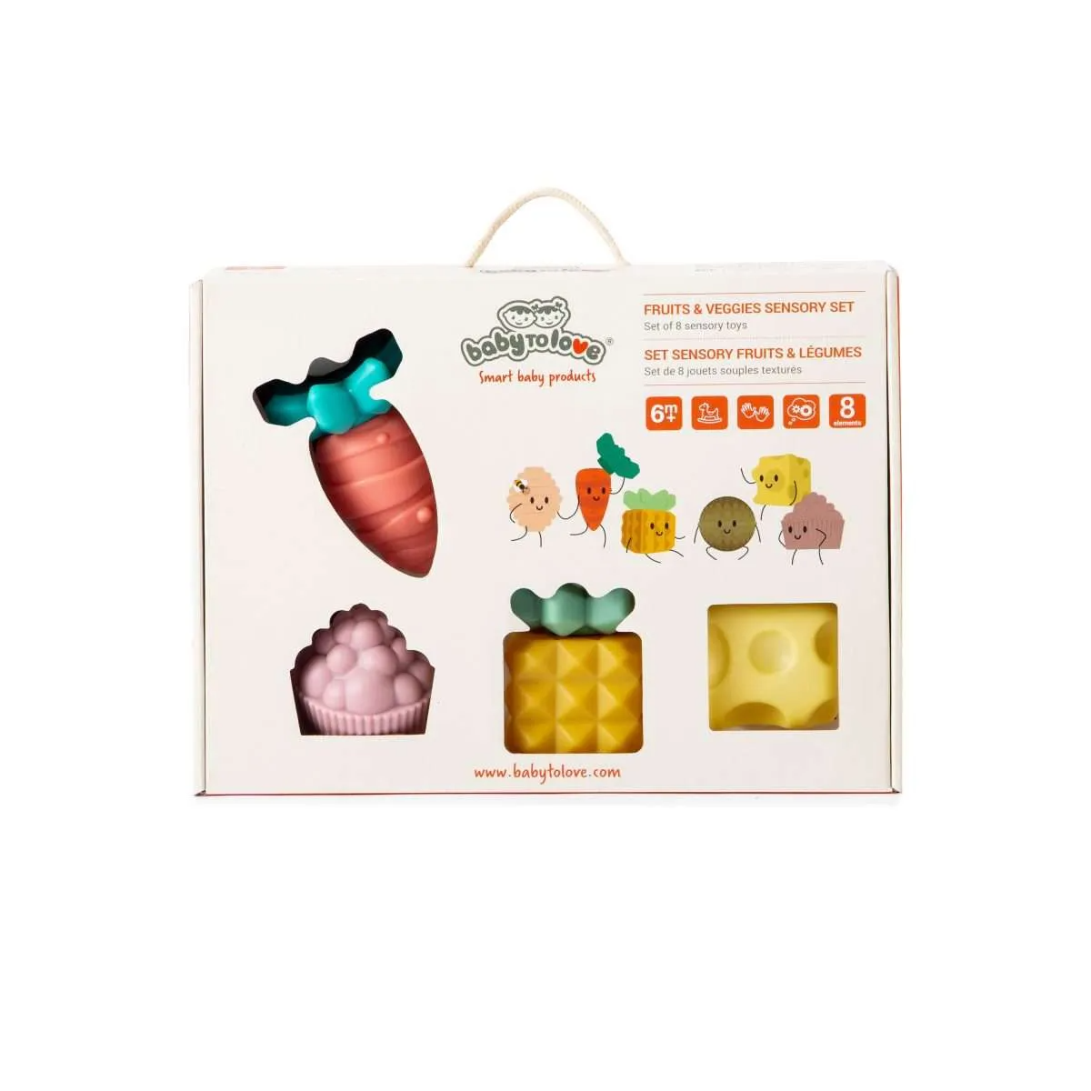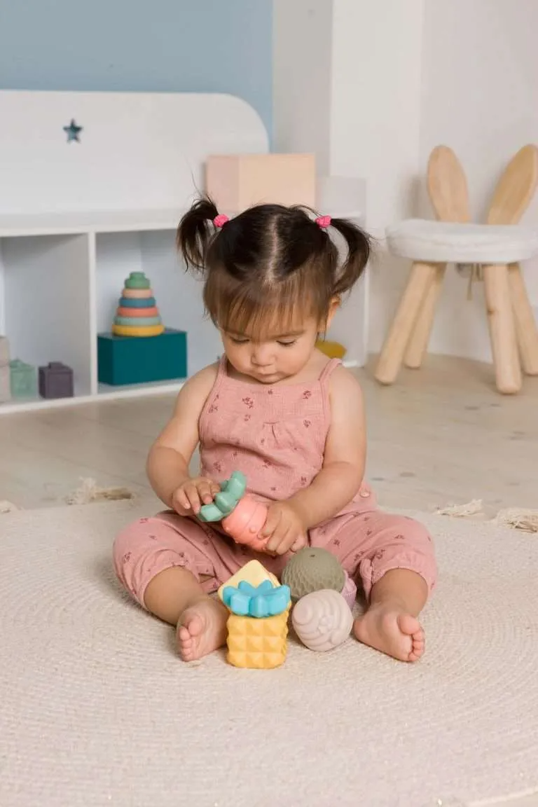 Un set de 8 éléments à la texture souple et douce aux doux reliefs, très agréables à attraper, manipuler et assembler. Pour stimuler la curiosité de bébé et développer sa motricité fine.