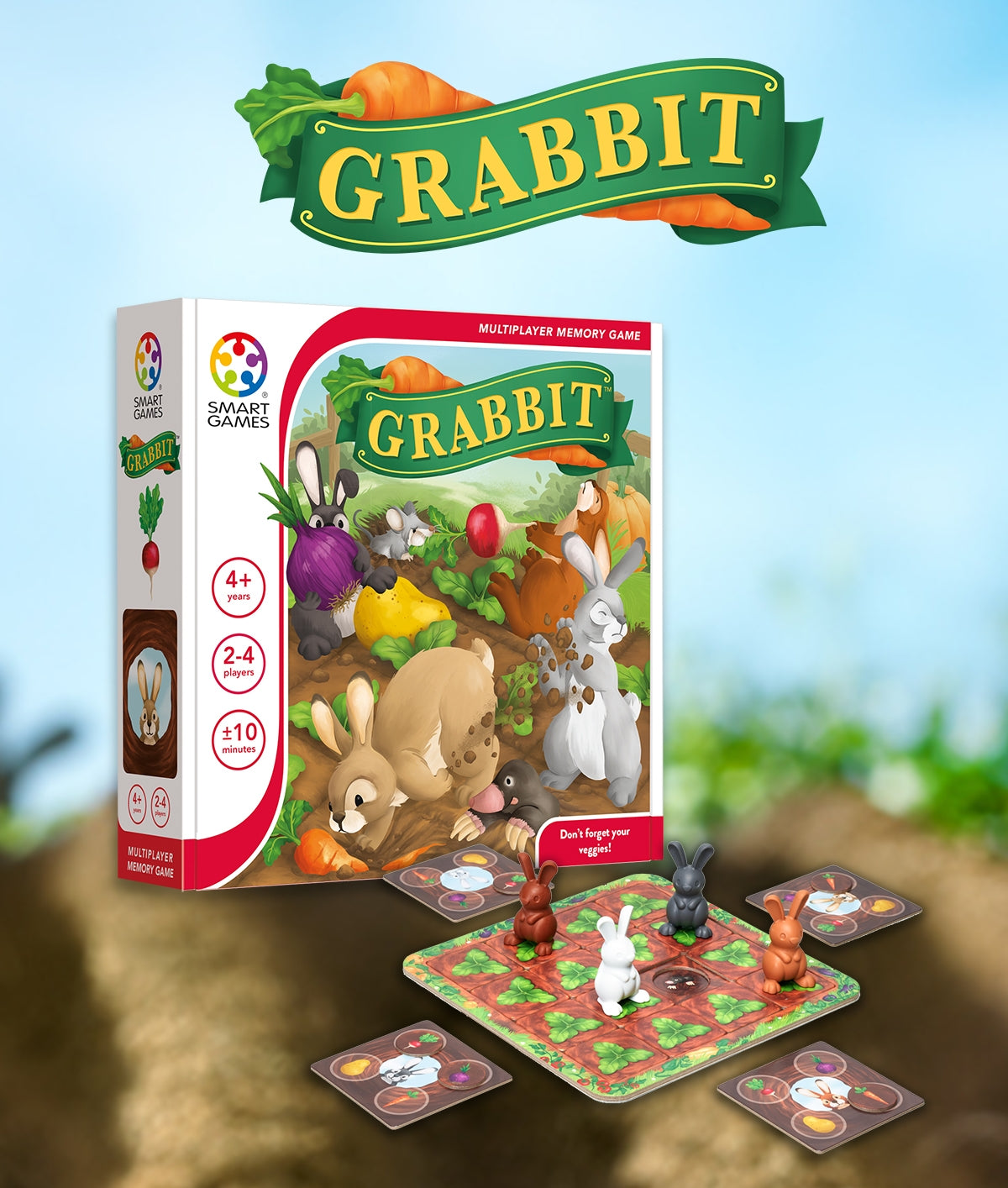 Des lapins affamés sautent dans le potager. Différents légumes deviennent visibles lorsque les lapins regardent sous les feuilles. Peux-tu te rappeler quel légume est planté où ? Sinon, les animaux qui vivent sous terre reprendront vos légumes ! Serez-vous le premier à collecter les 4 légumes différents ?