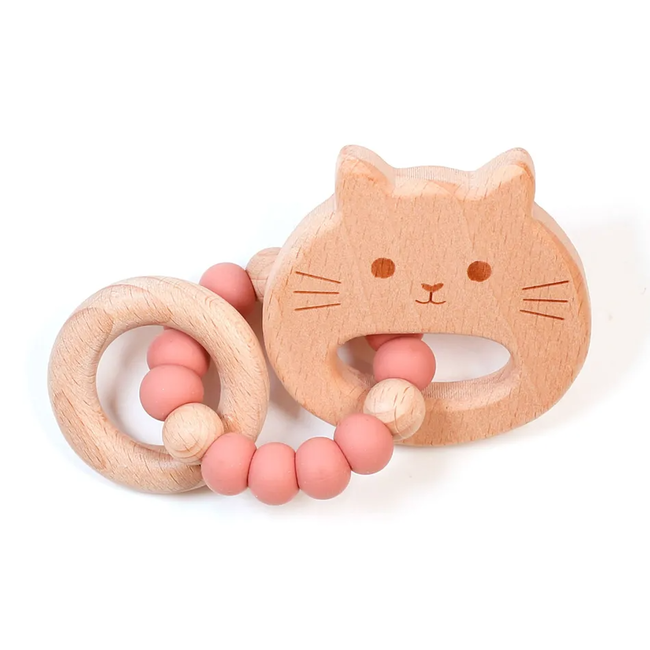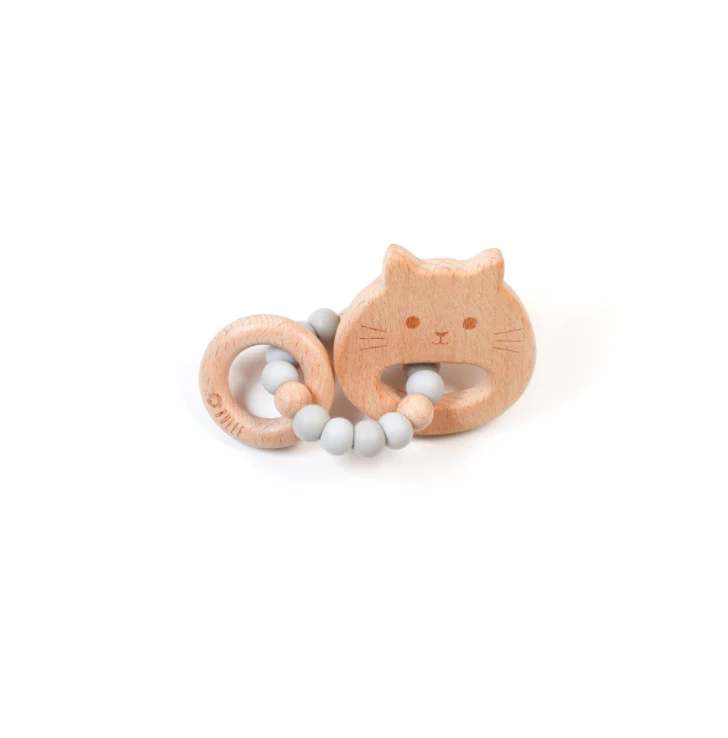 Votre mini appréciera le mélange des textures du bois et du silicone qui éveilleront ses sens, l’aideront à soulager la douleur associée à la poussée dentaire ainsi qu’à développer sa motricité fine. Sans oublier le joli cliquetis émis par le bois qui s’entrechoque lorsqu'il secoue son hochet: divertissement garanti!