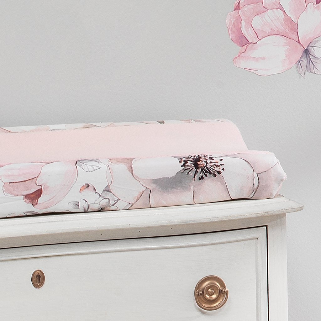Cette housse de matelas à langer complète parfaitement la collection Botanical baby de Lambs and Ivy. Elle est faite d'un tissu velour très doux et dans les teintes de rose. De chaque côté, un imprimé sur du coton sert de rappel floral à l'aquarelle, comme le reste de la collection. Vous disposez également de petites ouvertures de chaque côté de la housse pour les sangles qui servent à garder bébé en sécurité lors du changement de couche sur le matelas à langer.