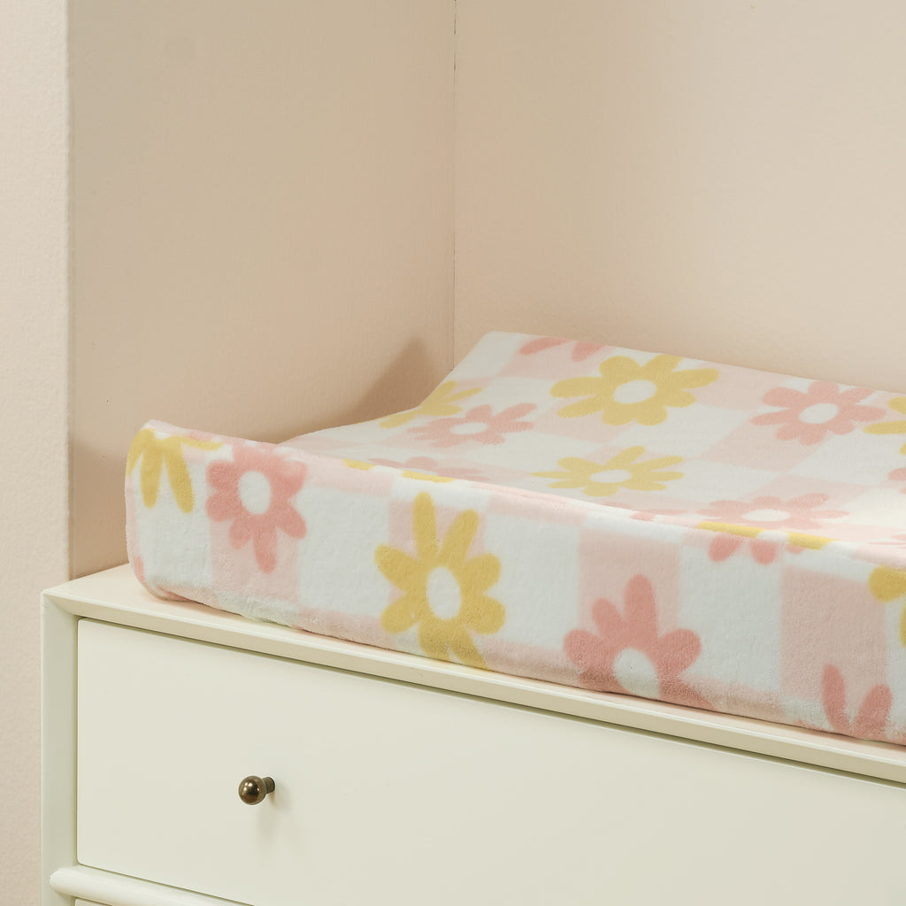 Cette housse de matelas à langer luxueuse et ultra-douce en polaire est parfaite pour garder votre enfant au chaud et bien au chaud pendant les changements de couches. Elle est réalisée sur un fond à carreaux rose pétale et blanc, avec une jolie couleur rose et des marguerites jaunes gorgées de soleil.