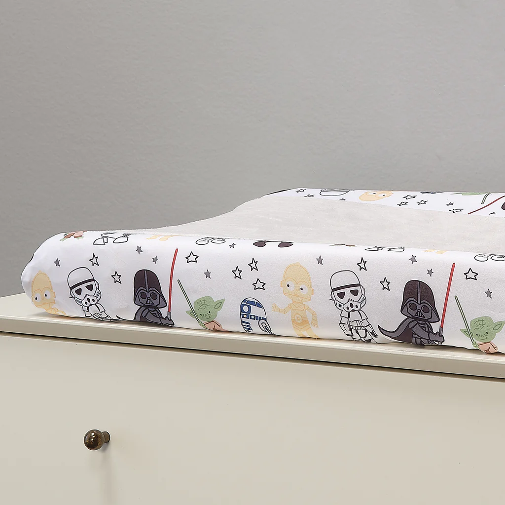 Le centre en polaire grise, doux et luxueux, est parfait pour changer votre petit padiwan (Jedi en formation). Les panneaux latéraux sont en microfibre douce à l'effigie de vos personnages Star Wars préférés.