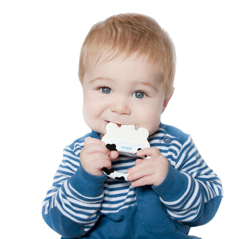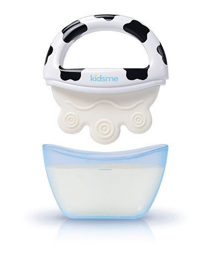 Le Icy Moo Moo de Kidsme est parfait pour soulager les gencives sensibles et douloureuses. Cette anneau de dentition peut également servir à faire des sucettes glacées quand bébé grandit. Il suffit de remplir le capuchon de lait ou du jus préféré de votre enfant, mettre l'anneau sur le capuchon et déposer au congélateur.