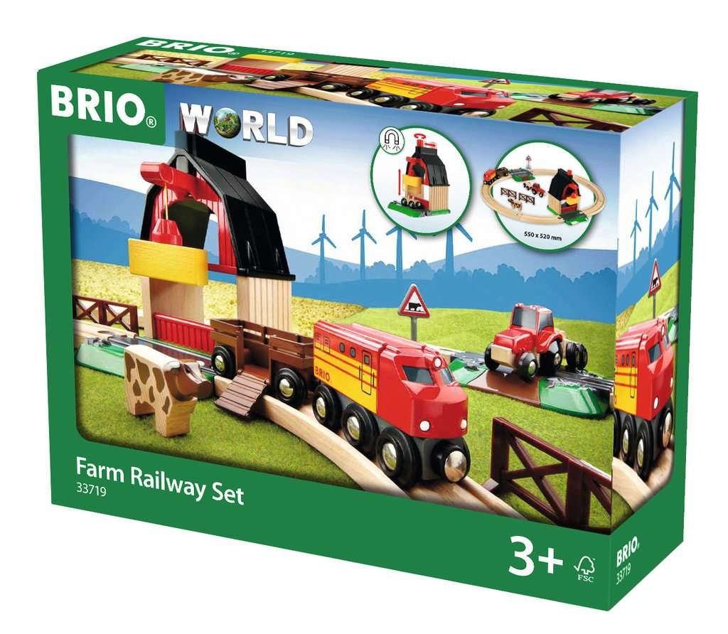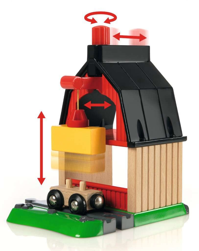 La vie à la ferme est paisible. La vache est dans les pâturages alors que le tracteur rentre le foin. La grue soulève alors le foin jusqu’au grenier. Lorsqu’il est temps de rentrer la vache pour l'hiver, invitez-la à monter dans le wagon de bétail dont l’accès est facilité par la rampe et poussez le train jusqu’à la ferme.