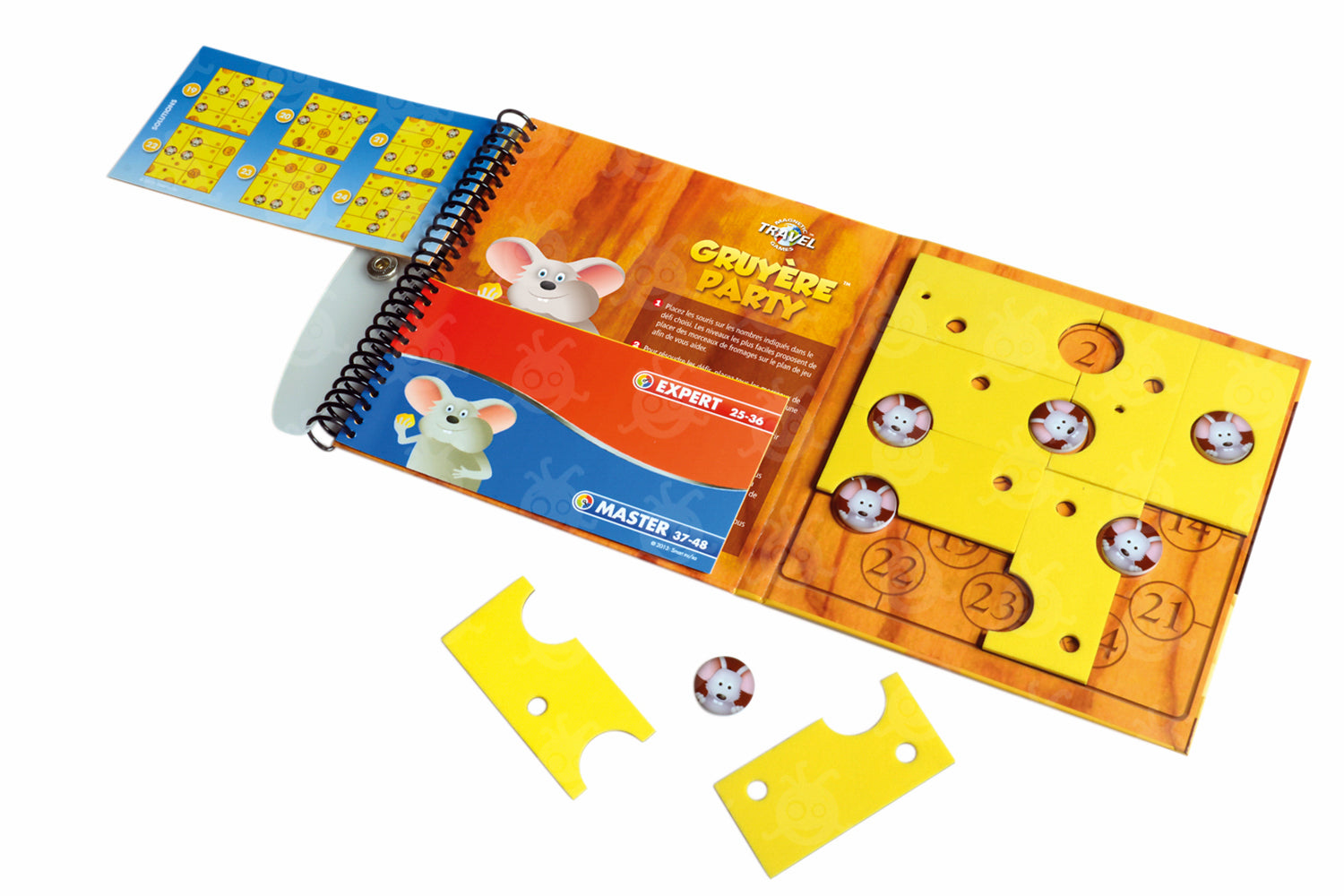 Saurez-vous placer les morceaux de fromage magnétiques sur le plan de jeu de telle sorte que les têtes des souris apparaissent à travers les trous de la meule de gruyère?