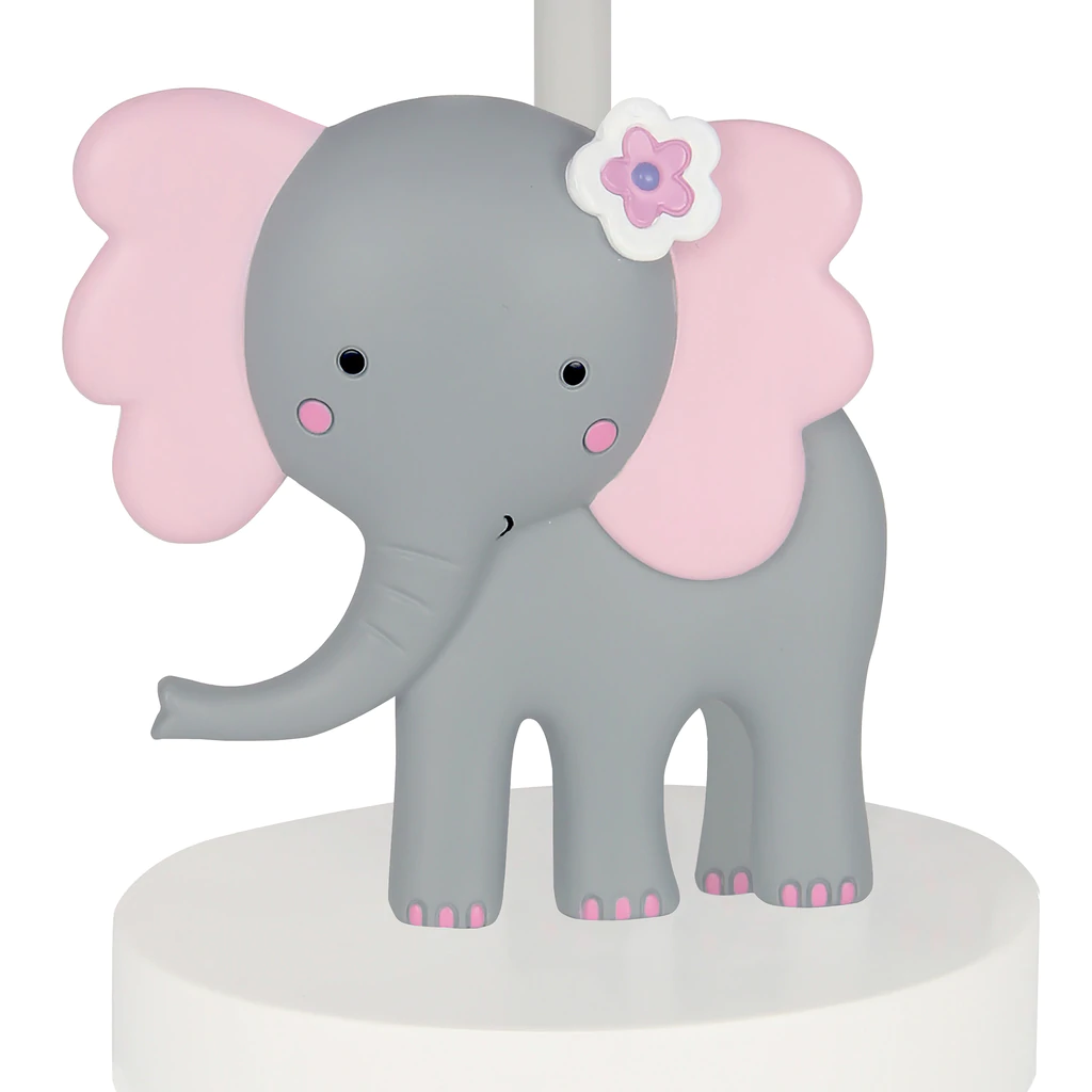 Cette lampe éléphant complète parfaitement la collection Rainbow Jungle de Lambs and Ivy. Ajoutez une douce lueur à la chambre de votre enfant avec cette lampe de chambre d'enfant personnalisée et son abat-jour. Elle est fabriquée en résine, est peinte à la main et mesure environ 14" de hauteur totale. Elle représente Cherry, notre attachant petit éléphant. Son corps est d'un gris doux et ses oreilles sont d'un joli rose. Ses ongles d'orteil et ses joues sont peints en rose.