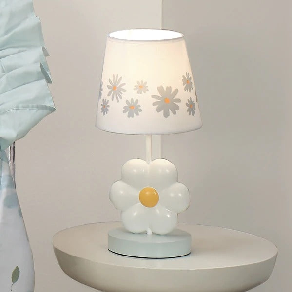 - Abat-jour au sol blanc coordonné avec de jolies marguerites.