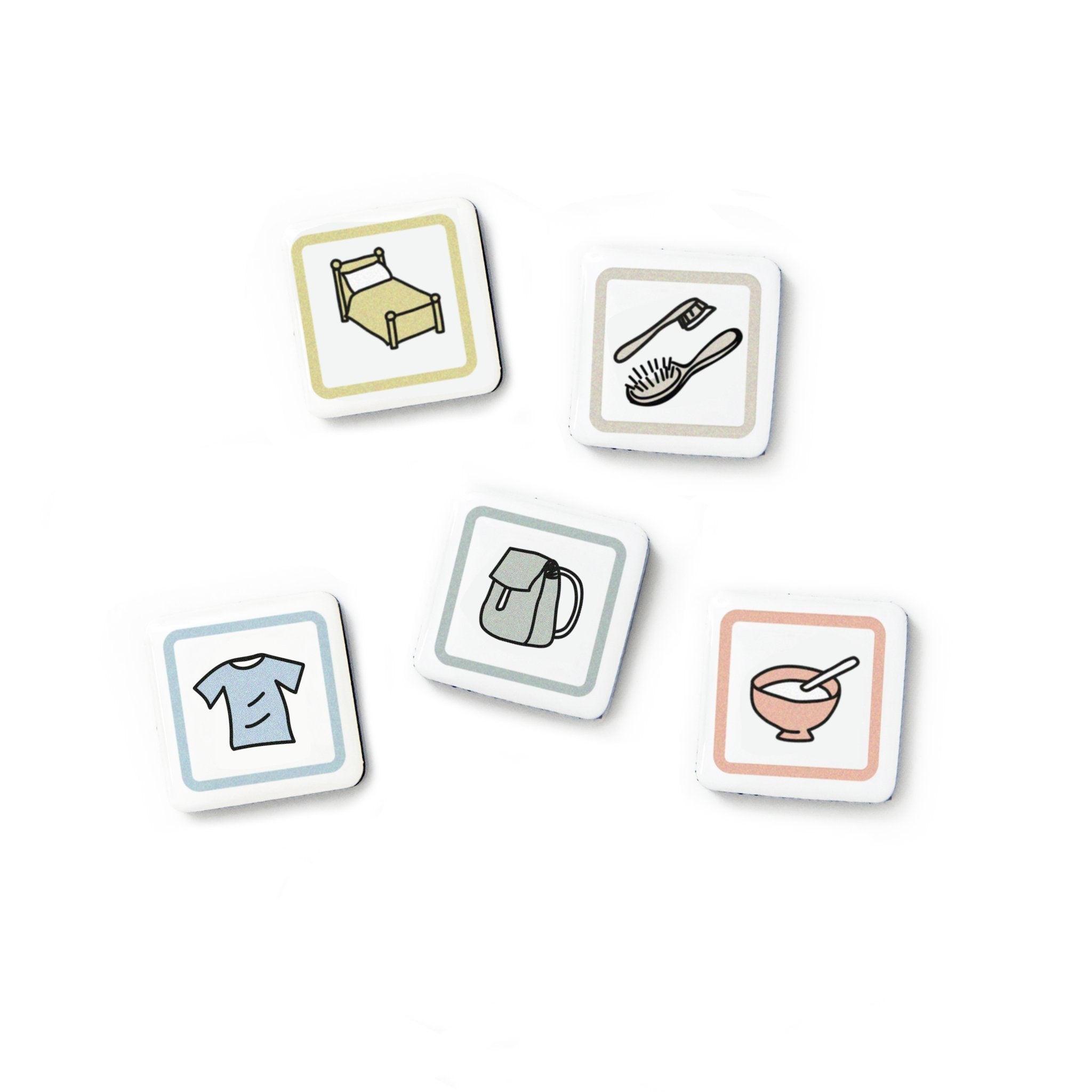 Cette série de pictogrammes magnétiques et ludiques de Les Belles Combines vous aidera à établir une routine matinale efficace pour vos enfants.