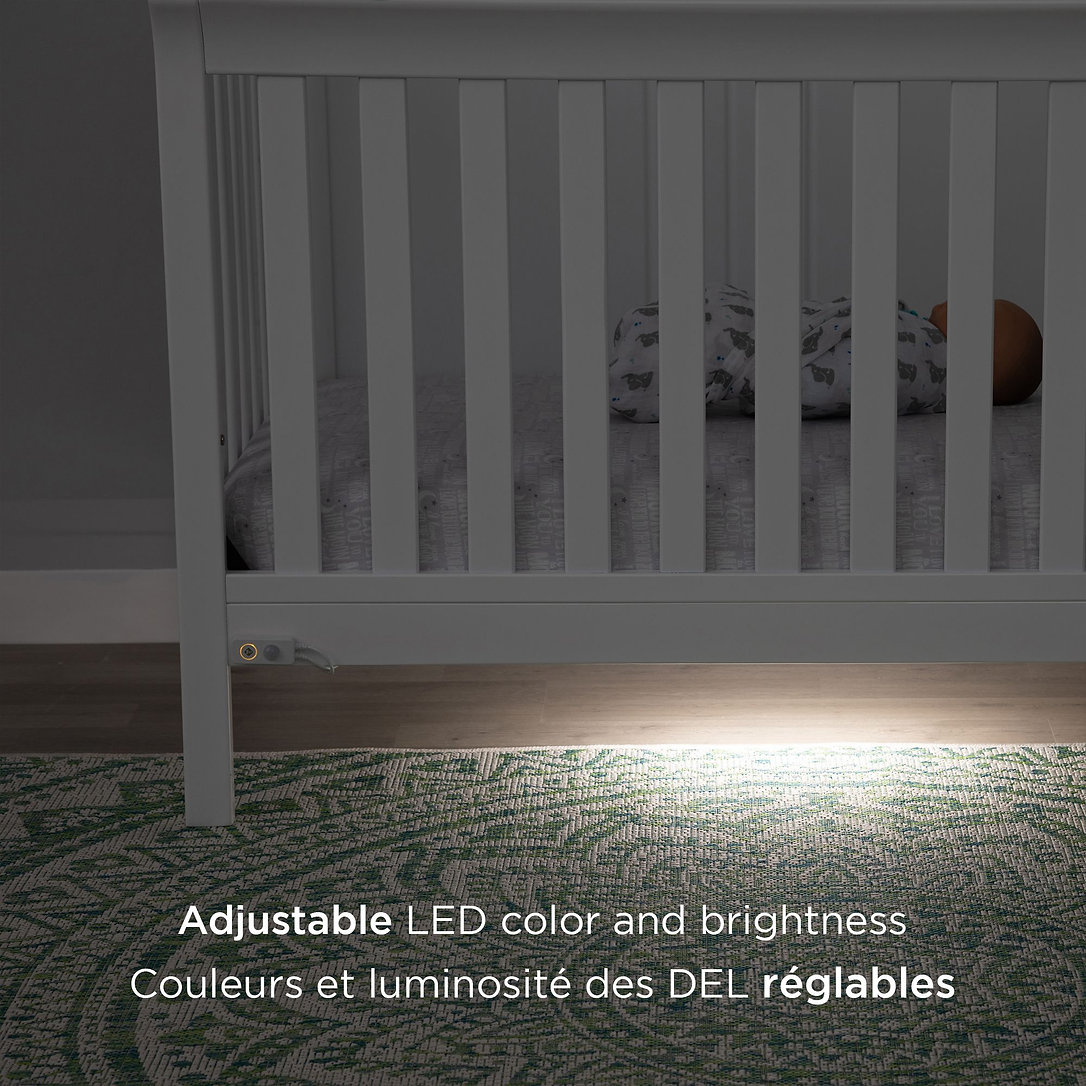 Donnez de l'éclat à votre lit d'enfant : la lumière intelligente sous le lit d'enfant de Safety 1st éclaire le chemin pour que vous puissiez jeter un coup d'œil la nuit sans réveiller votre enfant. La lumière ambiante émet une lueur constante mais douce sous le berceau, tandis que le détecteur de mouvement émet une lumière légèrement plus vive lorsque vous entrez dans la pièce. La tranquillité d'esprit au bout des doigts : Il est facile de personnaliser la lumière intelligente et d'effectuer des réglages d'éclairage grâce à l'application Connected. En tapotant et en glissant votre téléphone intelligent, vous pouvez sélectionner une variété de couleurs ou ajuster la gamme de couleurs blanches de chaudes à froides.